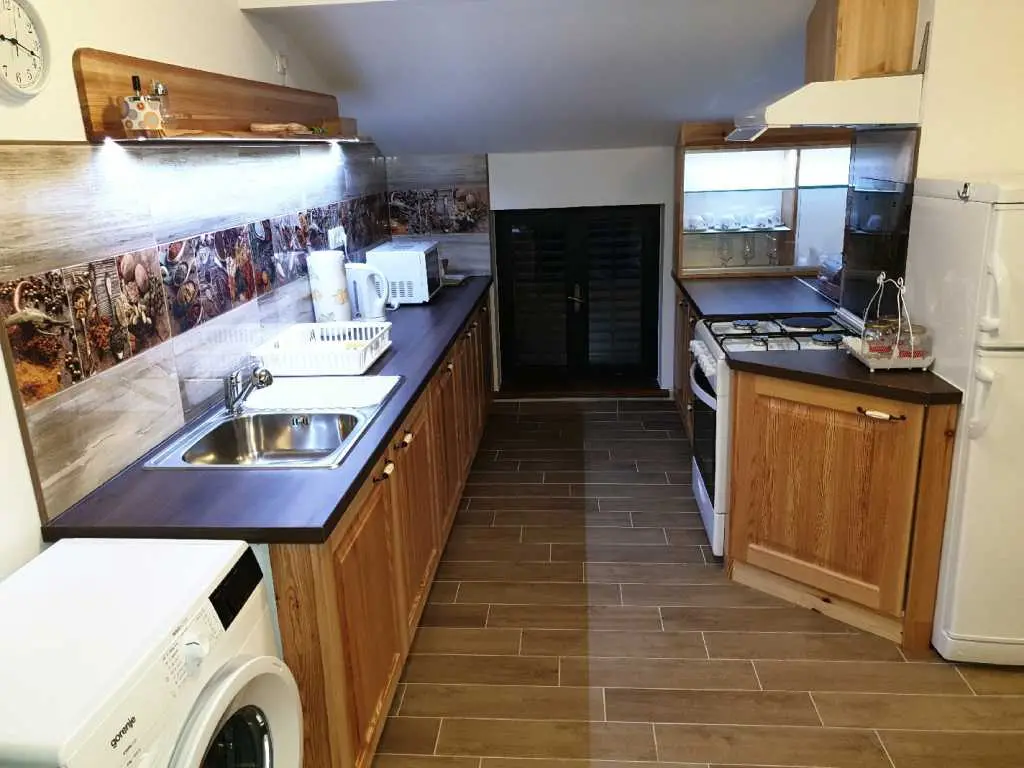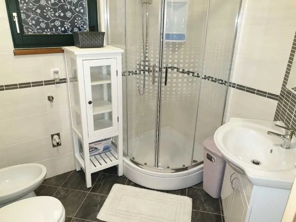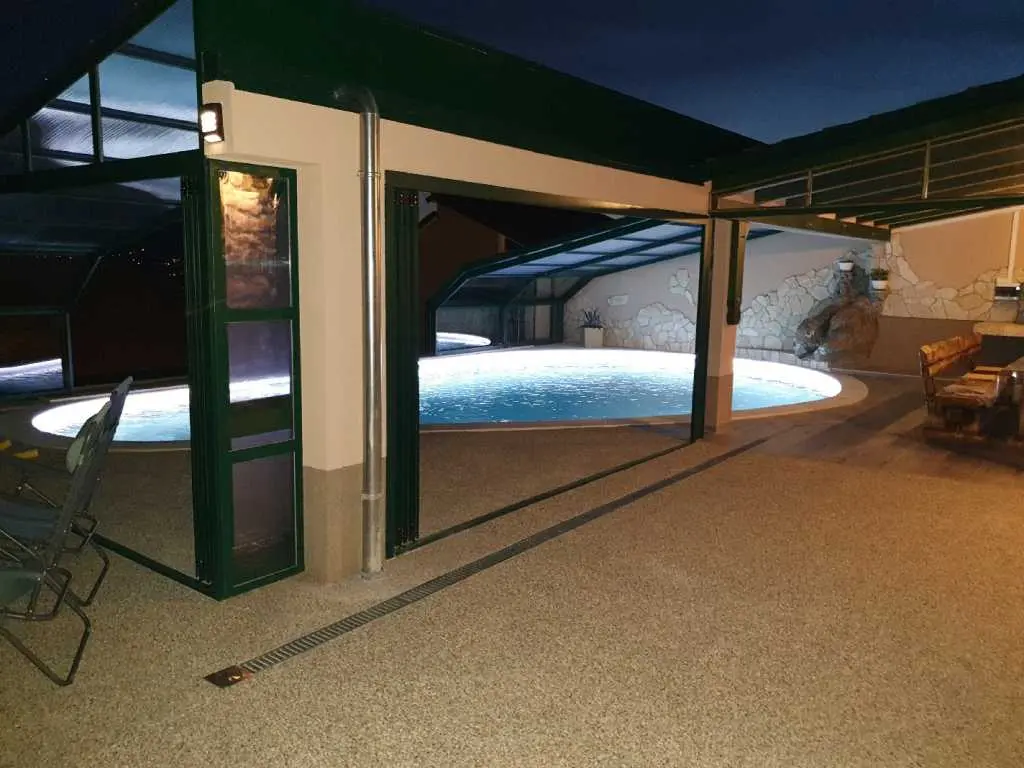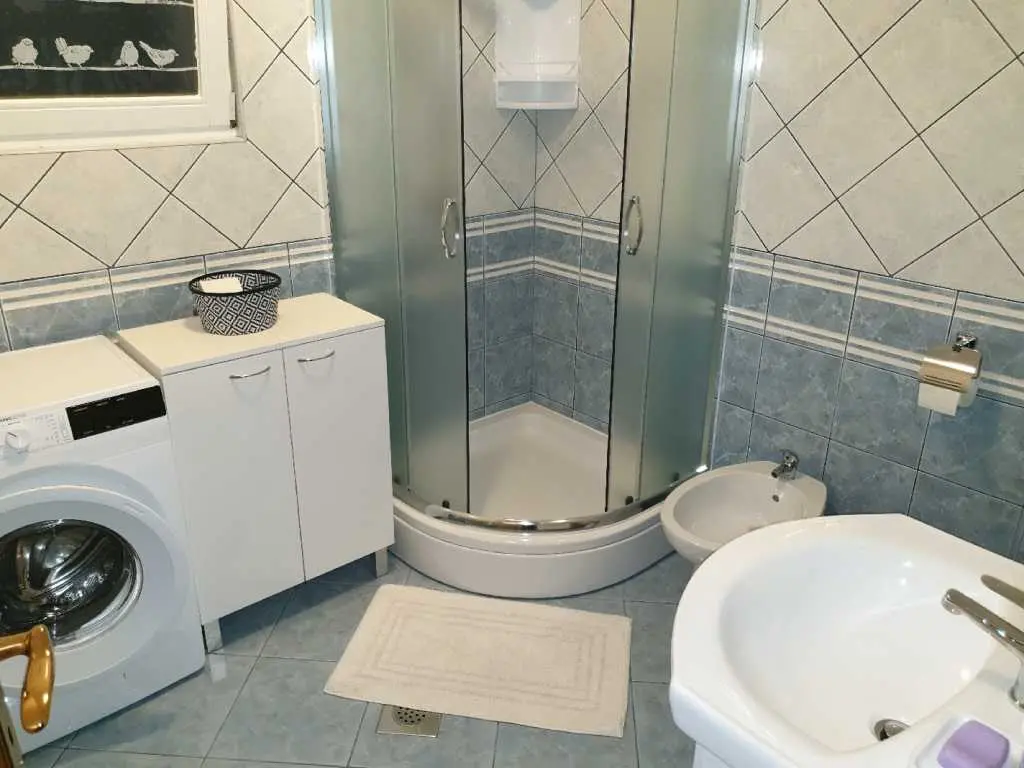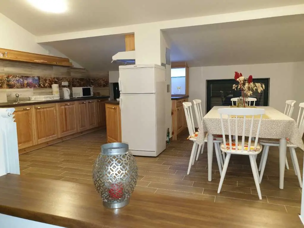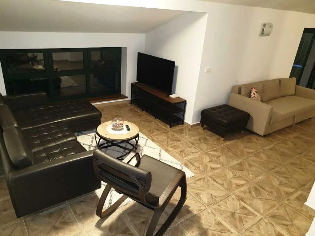 Villaen ligger på et rolig høytliggende sted, med vakker utsikt over hele Kvarnerbukta. Den består av et opphold i 2 etasjer med et samlet areal på 305m2. Hver etasje på sørsiden har en vakker terrasse med utsikt over havet. Huset har privat parkering for minst 5-6 biler. Det store svømmebassenget (60m3) ligger bak huset og tilbyr også en vakker utsikt over havet. Ved bassenget er det stor peis, hagekjøkken, kjøleskap, utendørs dusj, separat toalett, TV, musikk. Alt du trenger for å slappe helt av og kose deg. Husets underetasje består av 3 rom, bad og ekstra separat toalett, fullt utstyrt kjøkken, pantry, spisestue, stue. 155m2 med plass pluss en stor terrasse med utsikt. Øvre etasje består av 3 rom, 2 bad, utstyrt kjøkken, spisestue, stue og en terrasse med vakker havutsikt. Eiendommen har biljard, bordtennis, dart og treningsstudio