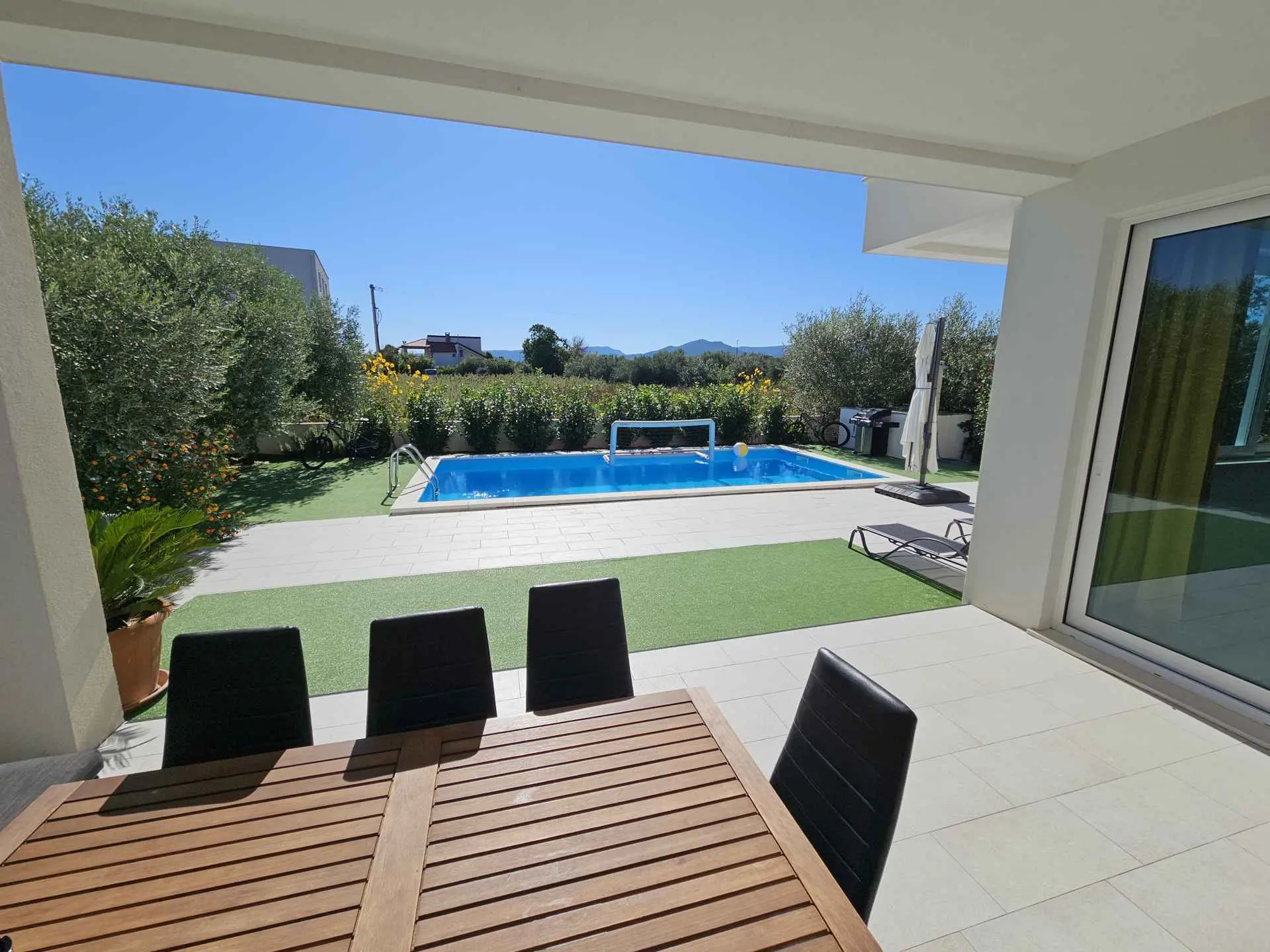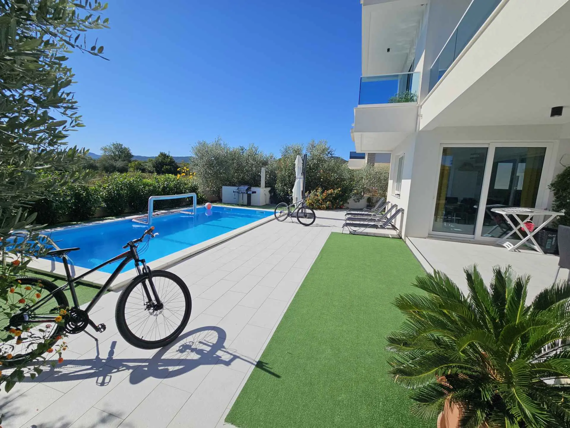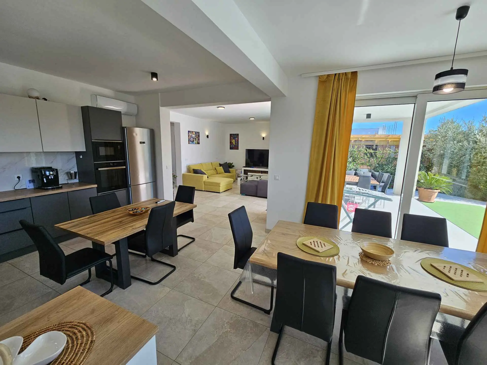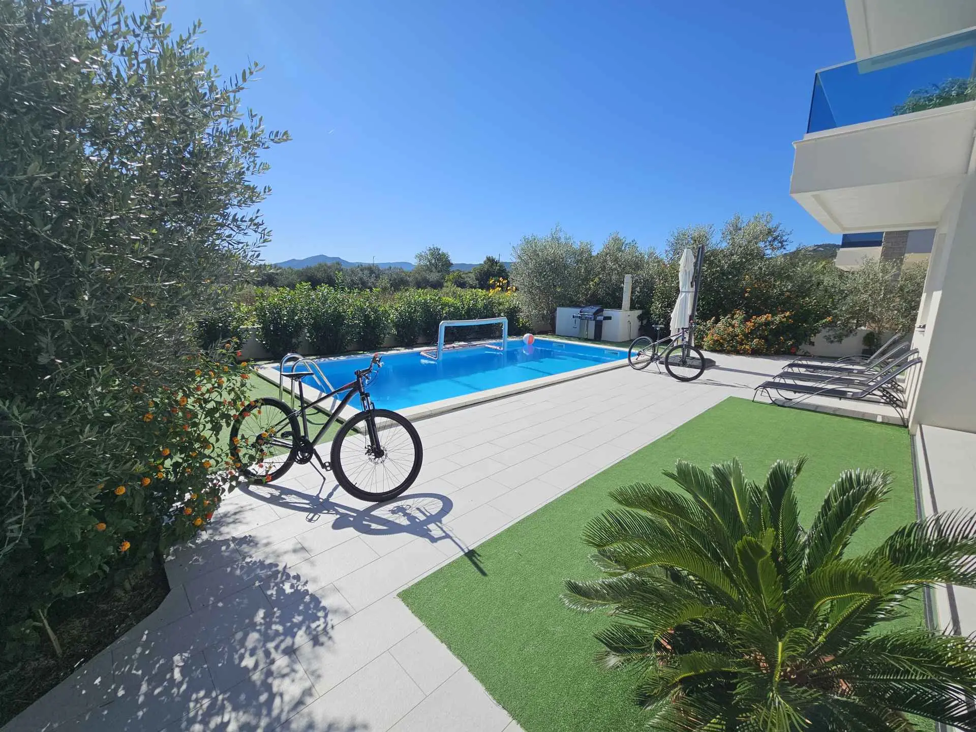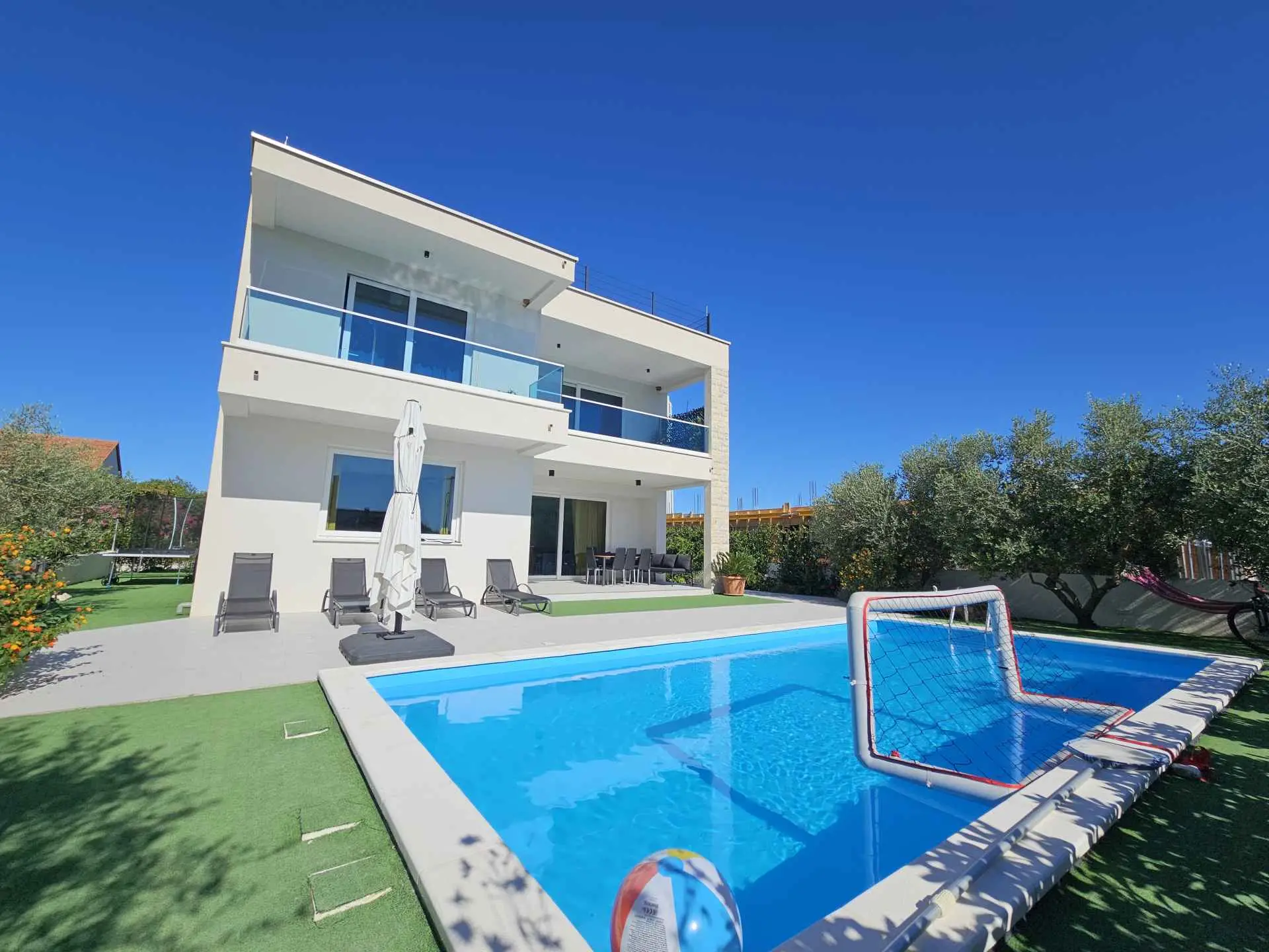 Helt ny villa, 230 m2 luksuriøs plass kombinert med 32 m2 basseng. Perfekt valg for en vennegruppe eller for en enslig familie som verdsetter fred og privatliv. Bare 2-3 minutters gange fra sjøen tilbyr huset all komforten du ønsker for en avslappende ferie.