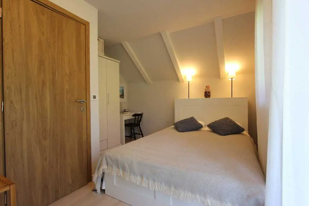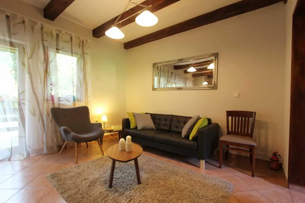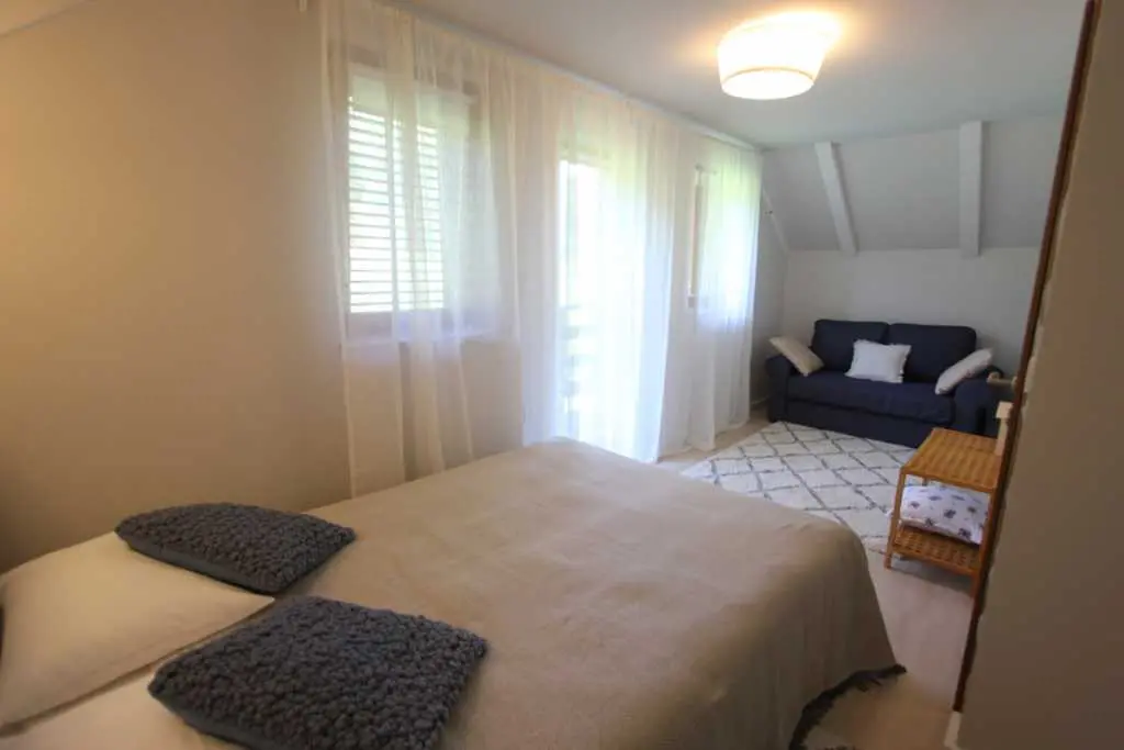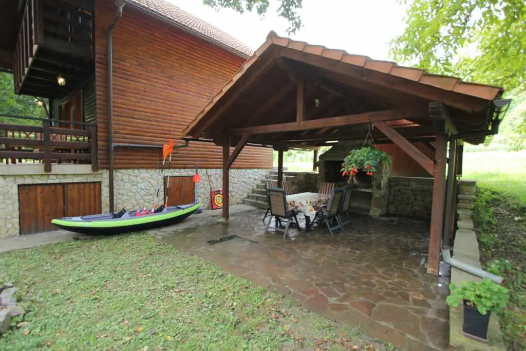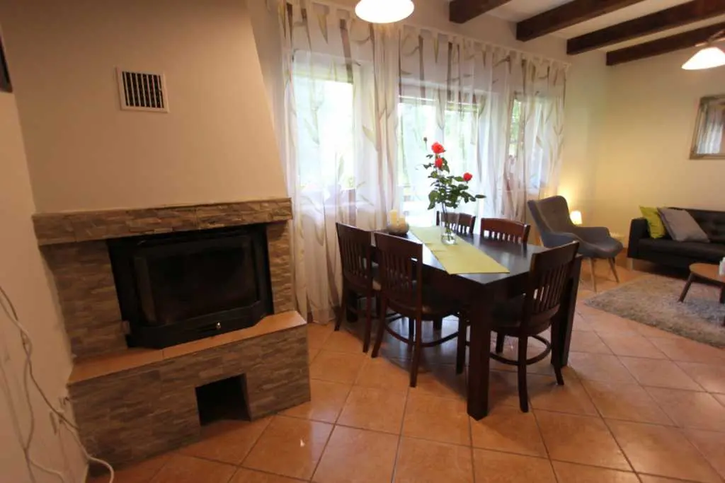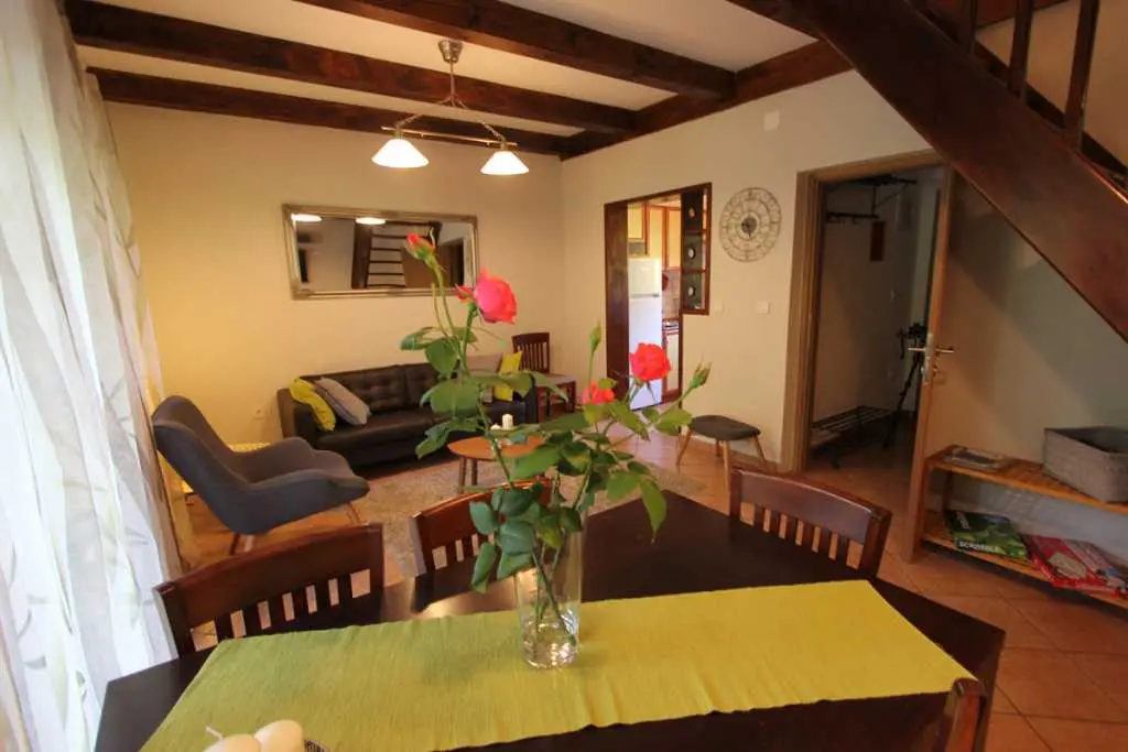 Holiday House ligger ved elven Kupa, bare et dusin meter fra kysten, og tilbyr komfortabel overnatting for 6 personer (4 enkle og 2 ekstra senger). Første etasje består av en hall, bad, stue med terrasse og fullt utstyrt kjøkken. En intern trapp fører til loftet hvor det er to doble soverom: hvert rom har en balkong. Huset har blitt renovert og utstyrt med nye møbler.