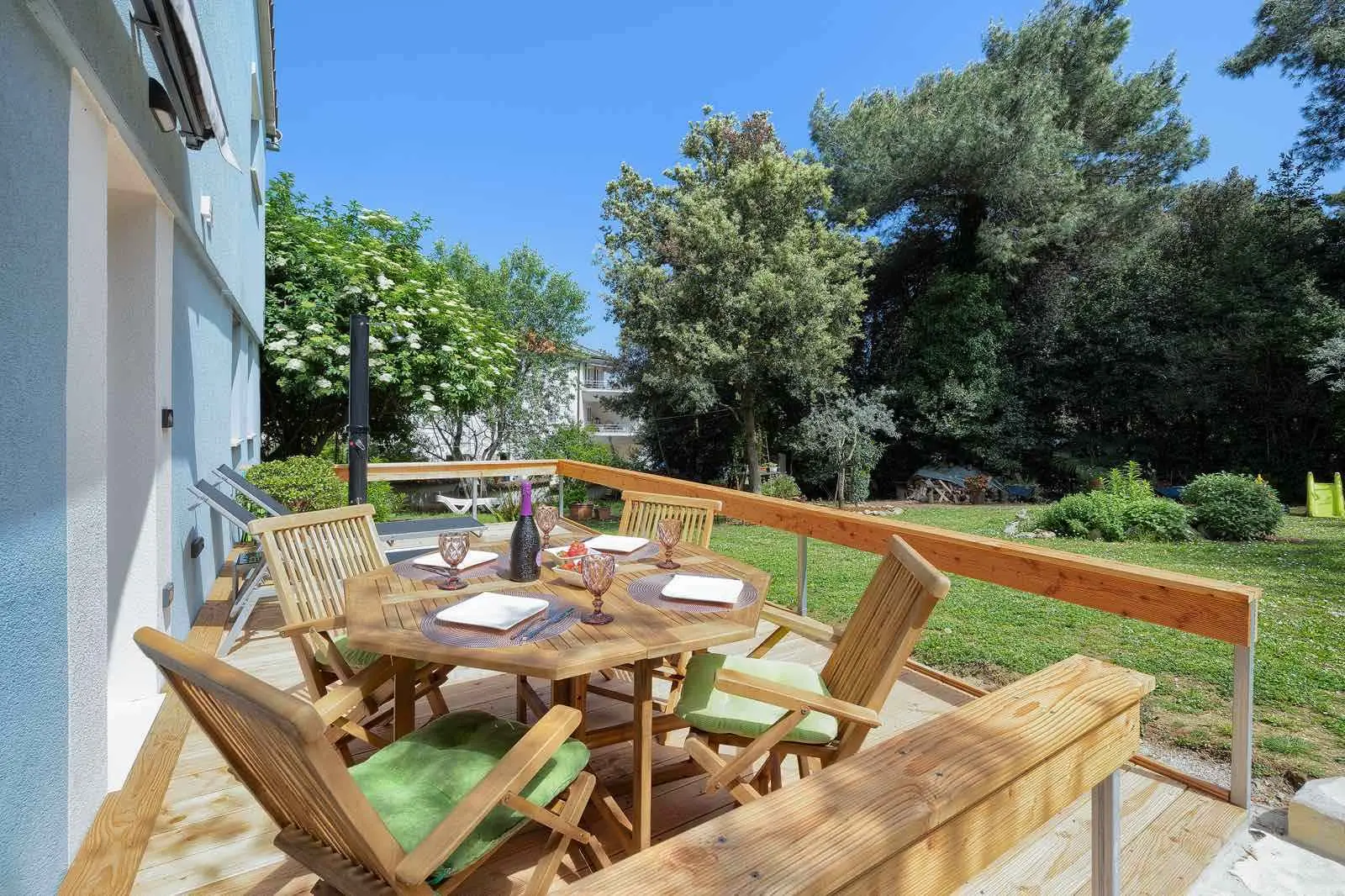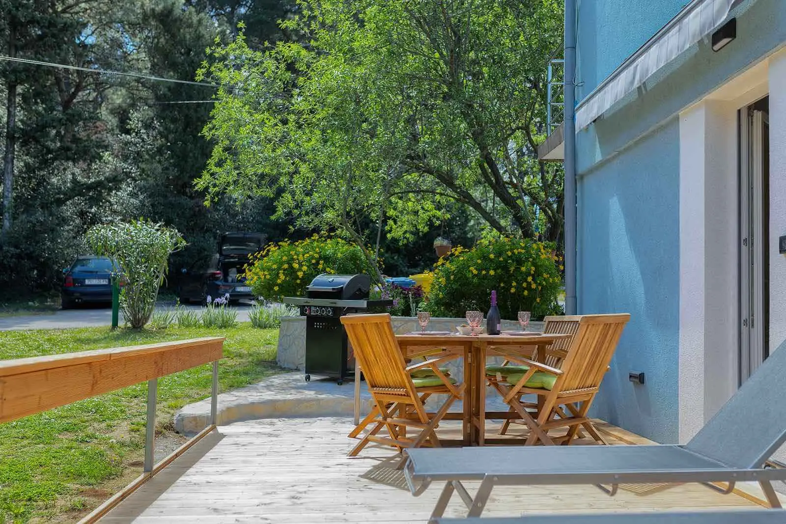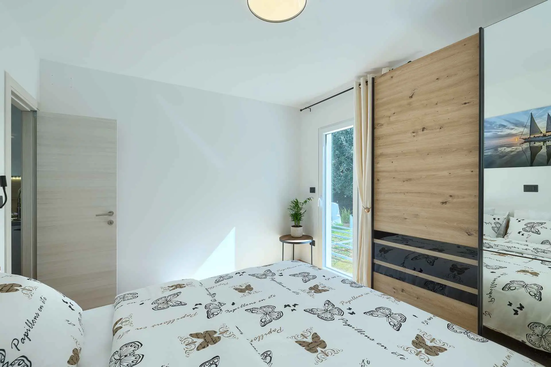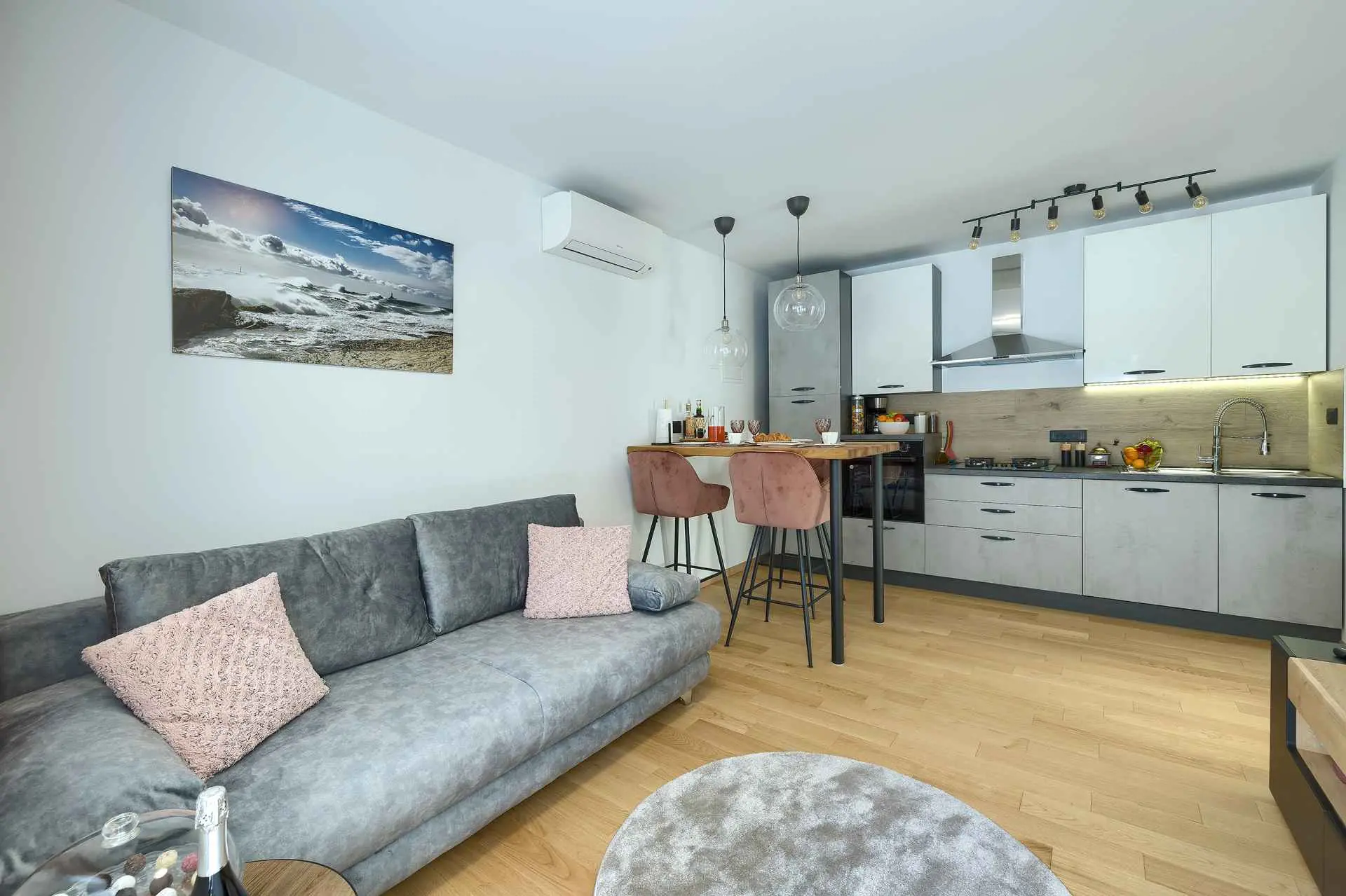 Nær sjøen, i en fantastisk beliggenhet ved siden av furuskogen, er det en fullt møblert leilighet Niko. Apartments tilbyr virkelig alt for en flott ferie i fullstendig fred og ro. Leiligheten er for to personer, og pluss en på sofaen i stuen. Moderne møbler, bestående av ett soverom med dobbeltseng, stue, spisestue, fullt utstyrt kjøkken, bad terrasse og 1 parkeringsplass. Leilighet med hele overflaten på 34m2. Dette rommet har klimaanlegg, plasma-TV og satellitt-TV. Leiligheten er innredet med materialer av høy kvalitet for å gjøre ferien så hyggelig. Stranden ligger mindre enn 100 meter unna og kan nås via sti gjennom furuskogen. Fra stranden kan du gå promenaden langs sjøen Banjole Simple - denne leiligheten har alt for en avslappende og idyllisk ferie ved sjøen!