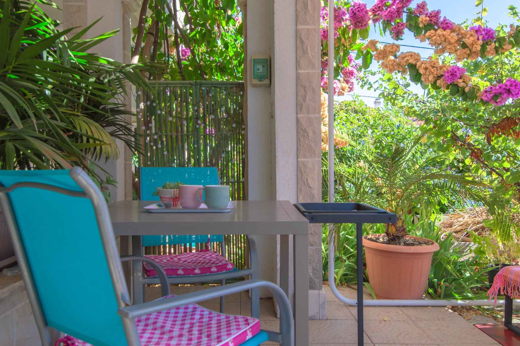 Sara leiligheter i første etasje, steinhus i den gamle delen av Bol. Moderne, komfortable, fullt utstyrte leiligheter for 2 personer, med terrasse, sjøsiden / sør. Utendørs peisgrill, boblebad. Ideell for en rolig ferie. Butikk 20 m, sentrum / havn 200 m, strand 200 m. Overbygd parkering foran huset - en smal adkomstvei - bredde på 2 m. 1. LEILIGHET SARA: 40 m2, gratis trådløs internettilgang, ett soverom med king-size-seng, stue med sofa, klimaanlegg, satellitt-TV, bad: vaskemaskin, hårføner, dusj, toalett, kjøkken fullt utstyrt med oppvask, gryter, oppvaskmaskin, el. stekeovn, brødrister, mikser, vannkoker, kaffetrakter, kjøleskap og fryser, mikrobølgeovn, insektskjerm (nett) på vinduene, overbygd terrasse, hagemøbler, mot havet, sør, parkering foran huset (smal adkomstvei 2 m bred), badehåndklær, sengetøy og kjøkkenhåndklær.