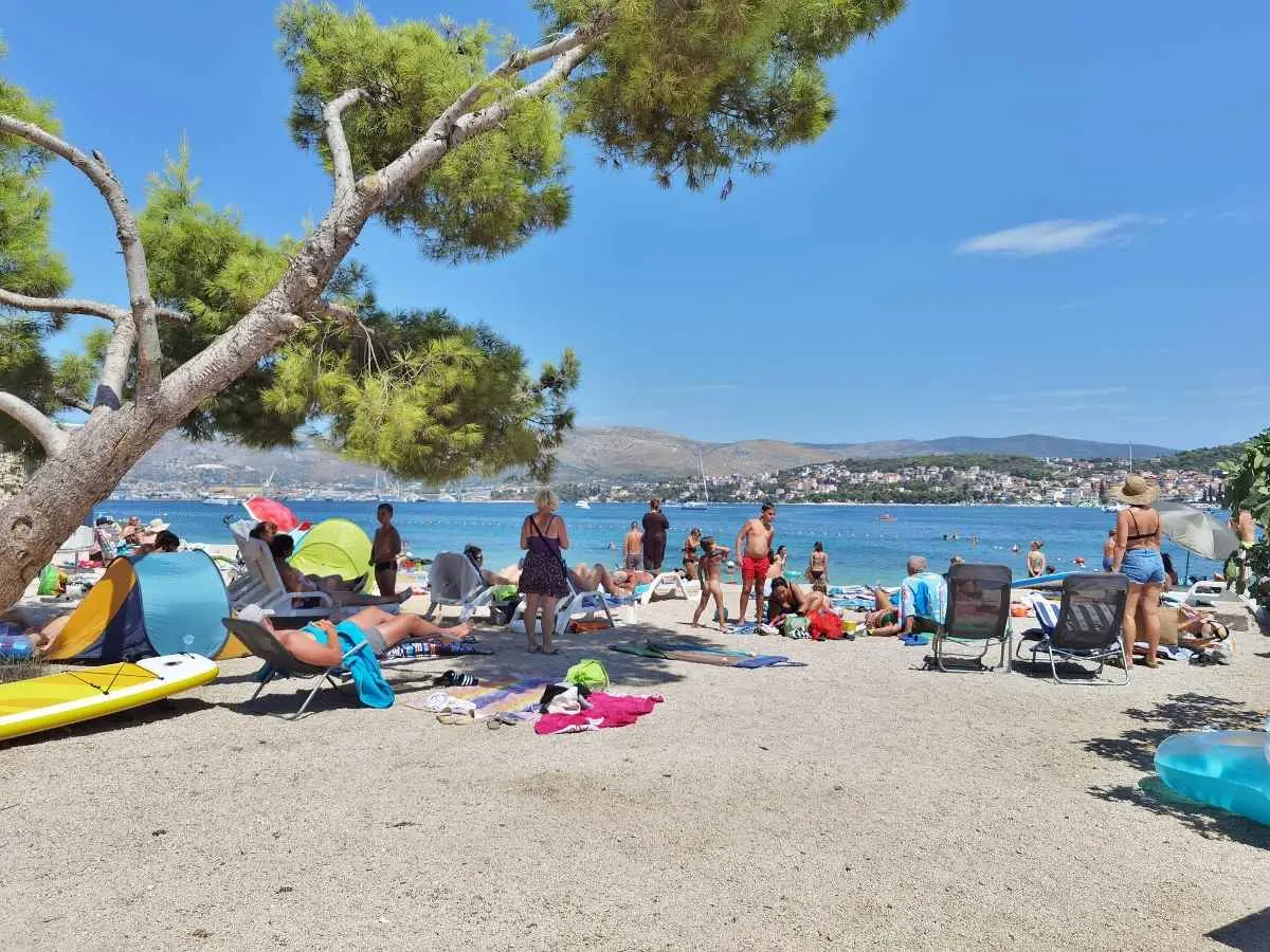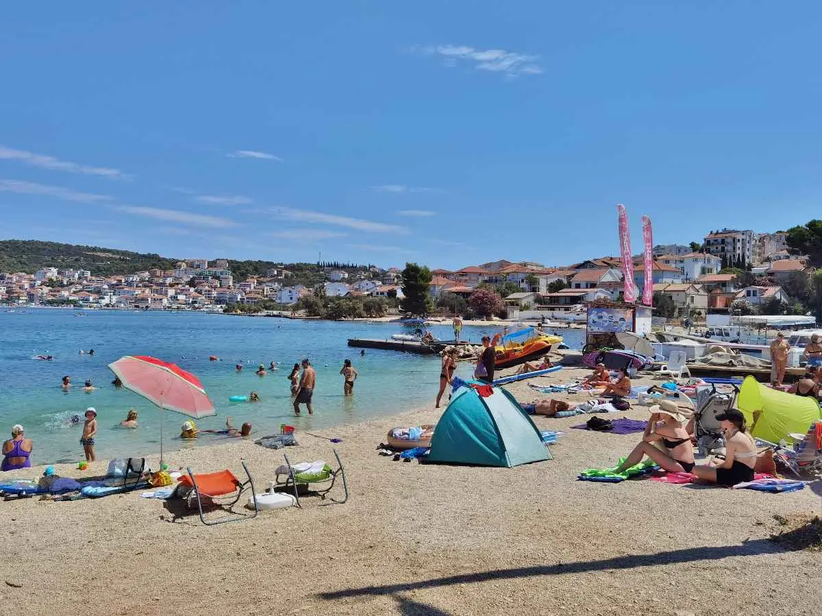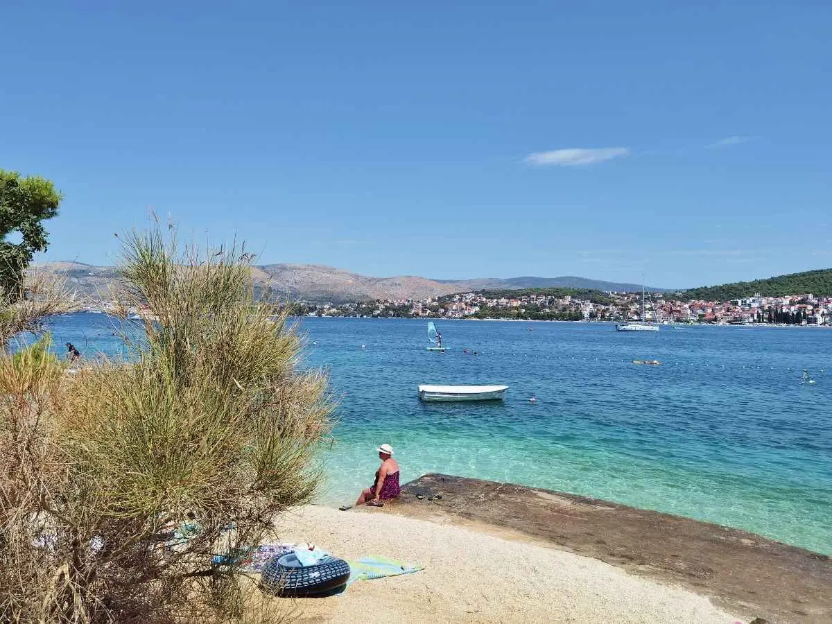 Leilighetene Ivan ligger på øya. Ciovo, 3 km fra Trogir, i Okrug Gorny, 2. rad fra havet og en lang strand. I nærheten er det mange kafeer, restauranter og butikker, samt en promenade til Trogir og til den motsatte delen av øya. Ciovo er en øy, men den er forbundet med fastlandet med to broer, noe som gjør den aktiv og tilgjengelig. Det er også veldig praktisk at flyplassen ligger bare 8 km unna, og byen Split ligger også i nærheten, 25 km. Trogir kan nås med en hyppig båt eller med vanlig buss, og fra Trogir busstasjon kan du reise til ulike naturområder og byer (utflukter) samt dra nytte av sjøutfluktene som tilbys i selve Okrug Gorny på den sentrale stranden. Leilighetene har separate innganger, terrasser i skyggen av grøntområder med utsikt over havet, og en grill med område til disposisjon for gjestene. Det er satellitt-TV, klimaanlegg, Wi-Fi, et fullt utstyrt kjøkken og gratis parkering i et inngjerdet område.