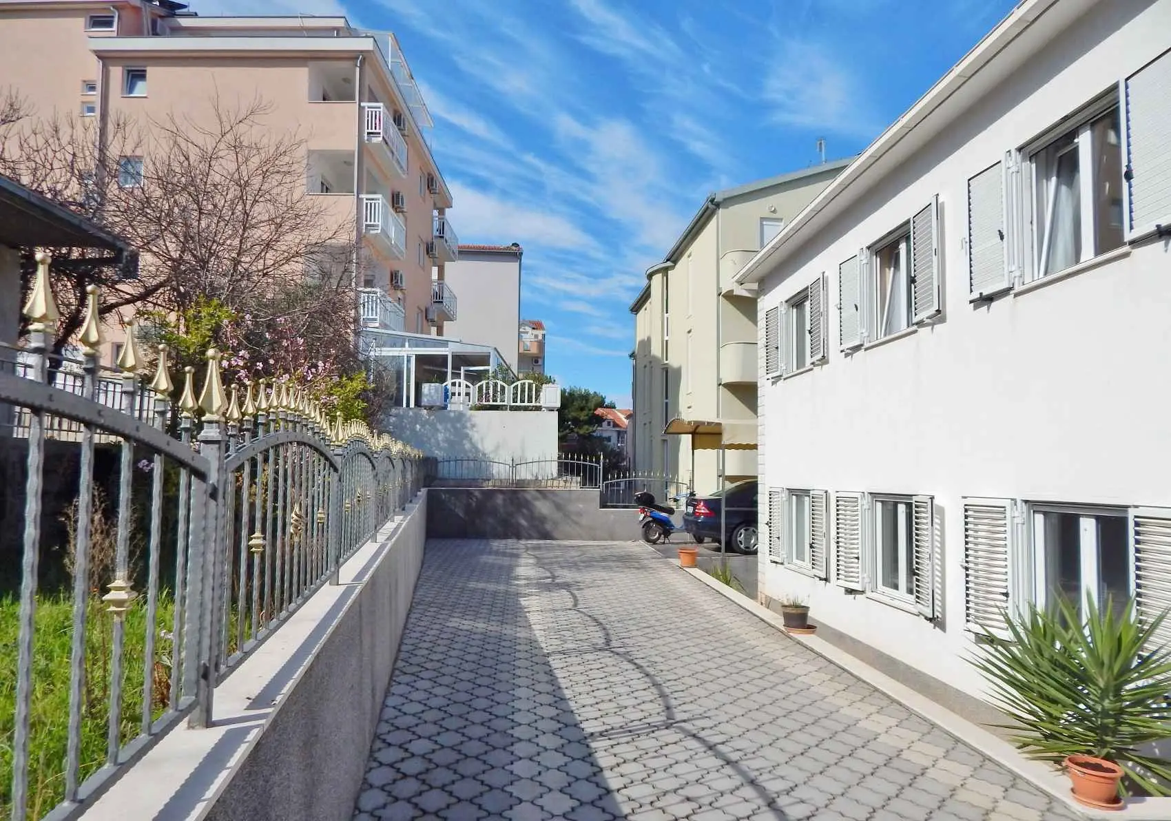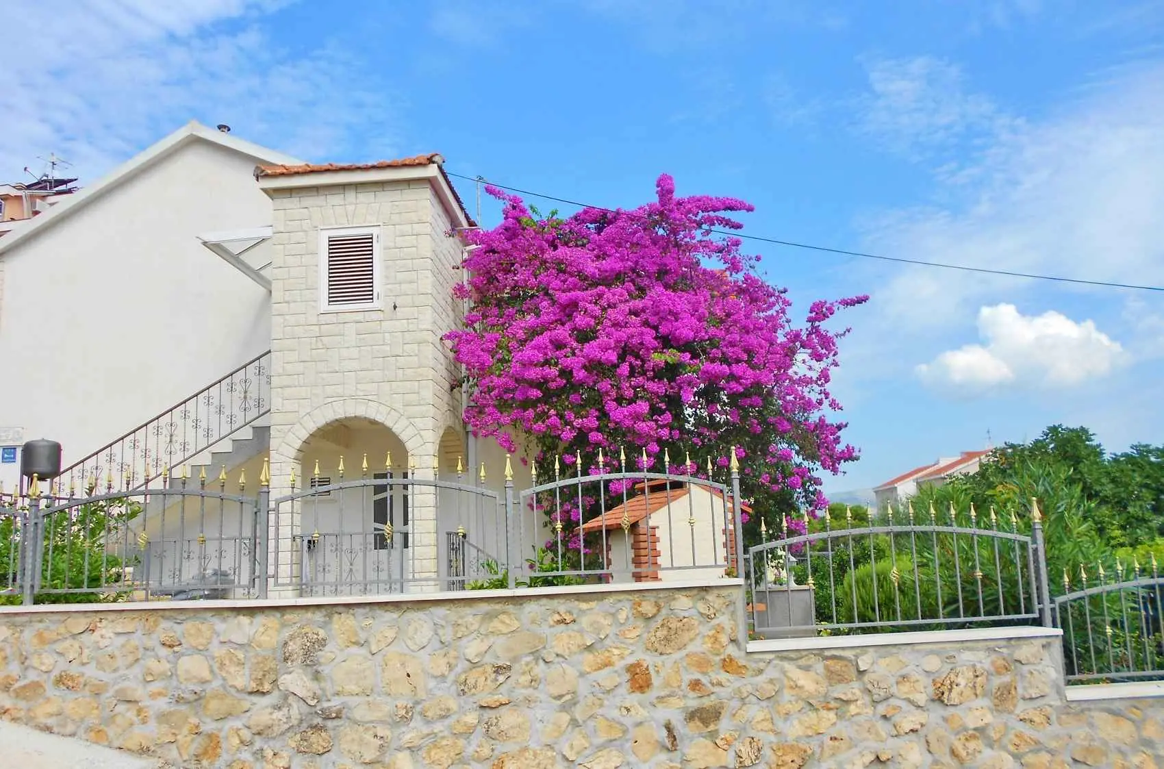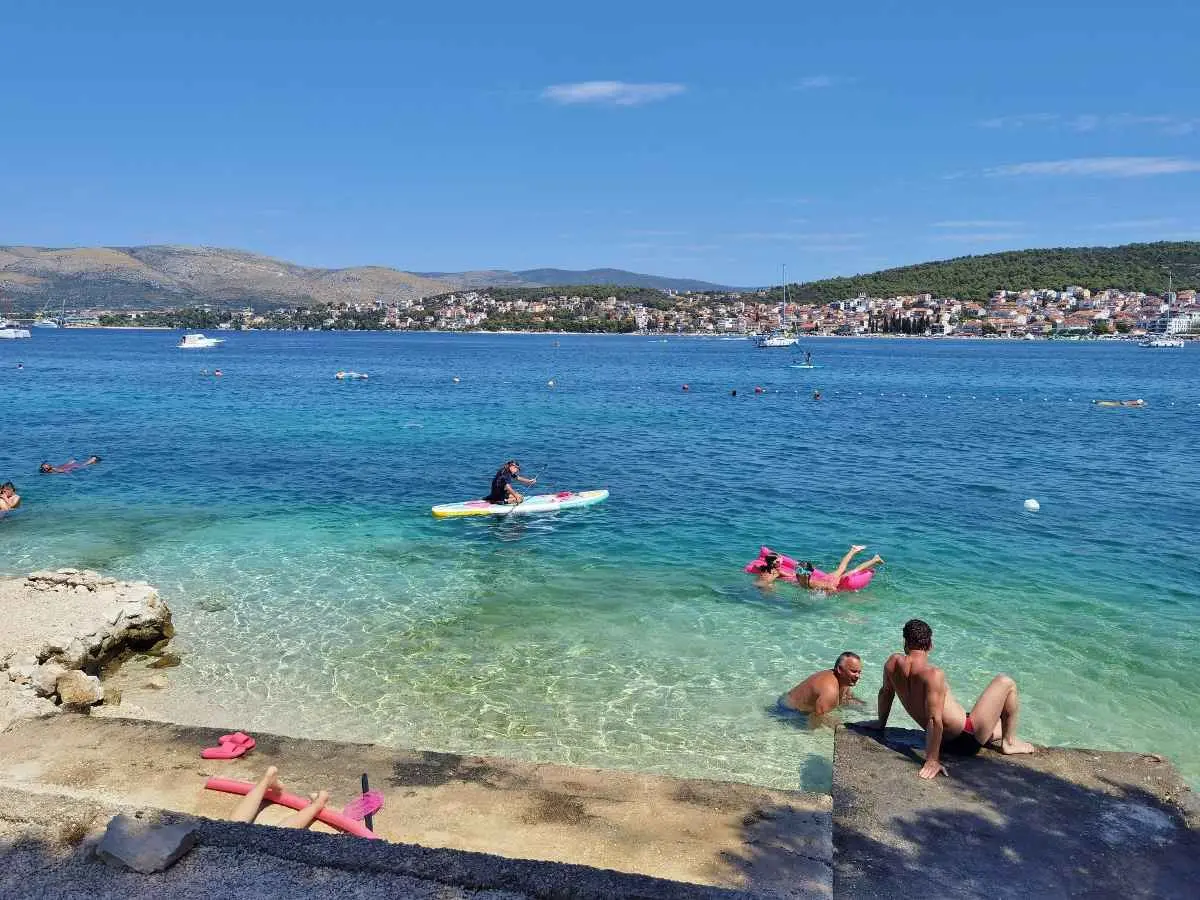 Leilighetene Ivan ligger på øya. Ciovo, 3 km fra Trogir, i Okrug Gorny, 2. rad fra havet og en lang strand. I nærheten er det mange kafeer, restauranter og butikker, samt en promenade til Trogir og til den motsatte delen av øya. Ciovo er en øy, men den er forbundet med fastlandet med to broer, noe som gjør den aktiv og tilgjengelig. Det er også veldig praktisk at flyplassen ligger bare 8 km unna, og byen Split ligger også i nærheten, 25 km. Trogir kan nås med en hyppig båt eller med vanlig buss, og fra Trogir busstasjon kan du reise til ulike naturområder og byer (utflukter) samt dra nytte av sjøutfluktene som tilbys i selve Okrug Gorny på den sentrale stranden. Leilighetene har separate innganger, terrasser i skyggen av grøntområder med utsikt over havet, og en grill med område til disposisjon for gjestene. Det er satellitt-TV, klimaanlegg, Wi-Fi, et fullt utstyrt kjøkken og gratis parkering i et inngjerdet område.