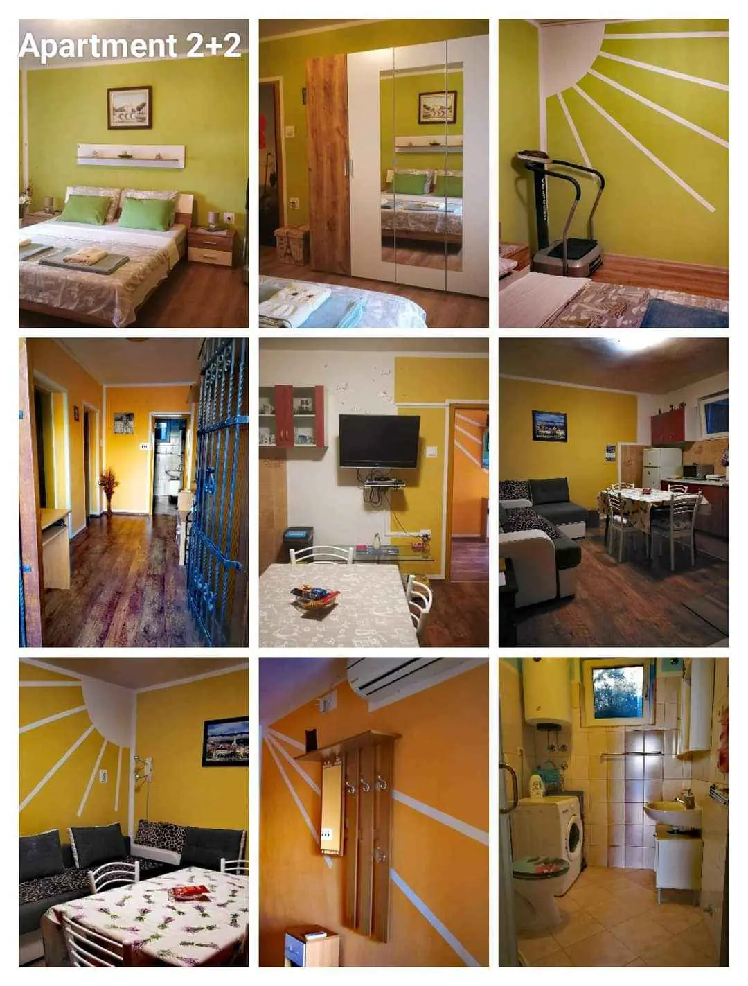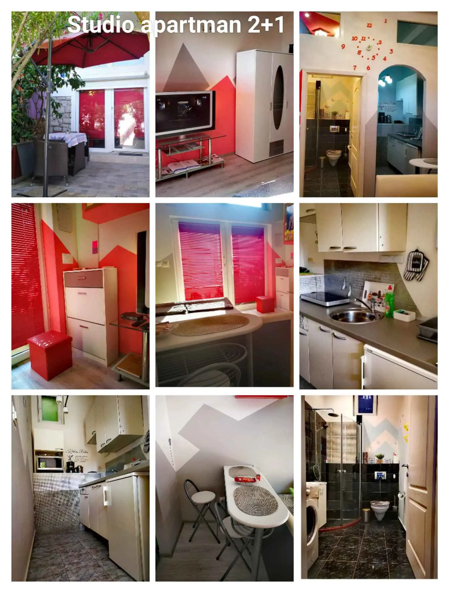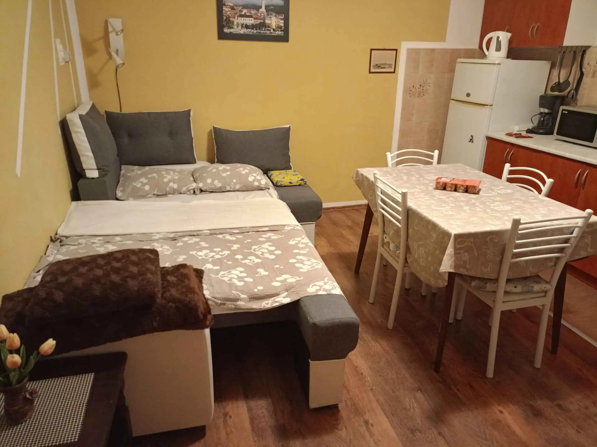 STUDIOLEILIGHET - 24 m2 + 16 m2 terrasse, egnet for 2 voksne og et lite barn (barneseng tilgjengelig, gratis). Egen inngang, parkering, wi-fi, satellitt-TV, air condition. Vaskemaskin. Nytt og moderne interiør. LEILIGHET 55 m2- ved siden av studioleiligheten, egnet for 2 voksne og 2 barn (en lastebilseng i stuen, 160 cm bred). Også parkering, wi-fi, satellitt-TV, air condition og vaskemaskin. Ekstra seng for baby eller eldre barn er mulig, gratis. Avstand fra sentrum av byen og strendene med sand og også med grus er 5 minutter til fots. I leiligheter finner du virkelig alt du trenger for oppholdet ditt! Utstyret til leiligheten er komplett, fra servise, sengetøy, håndklær, toalettpapir, sjampo for bad og vaskemidler, både på kjøkkenet og på badet, alt er i leiligheten du kan glemme. Pluss en ekstra overraskelse og en kald drink i kjøleskapet for å ønske deg velkommen! Noe annet du er interessert i, spør gjerne, vi er her for deg :-)