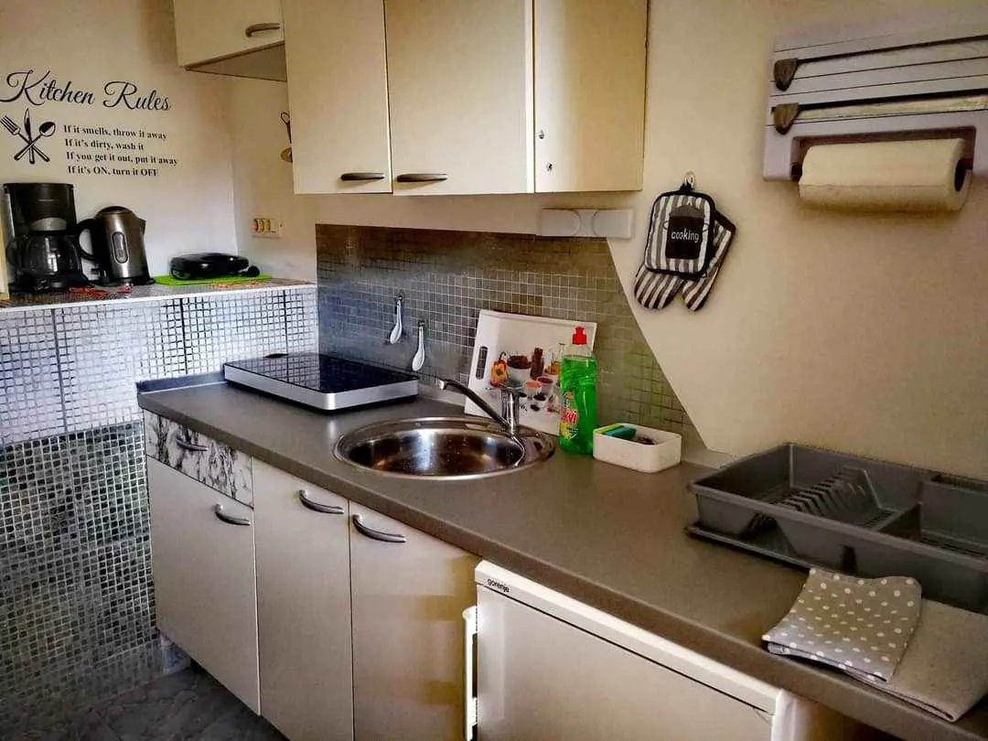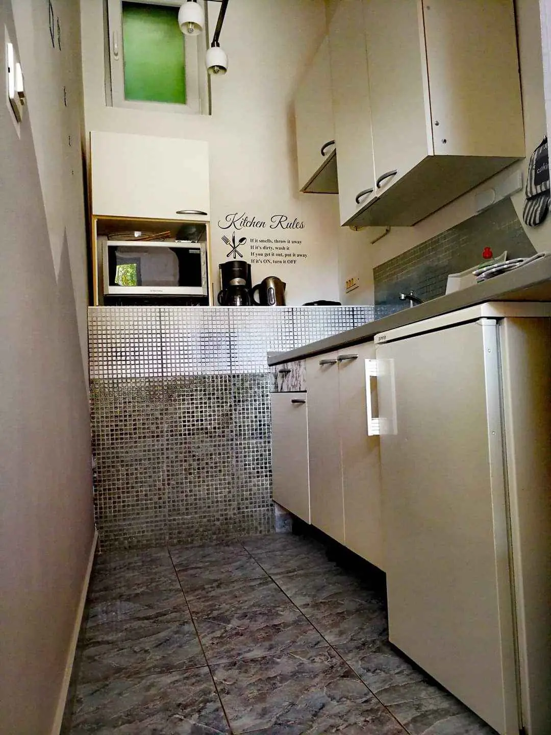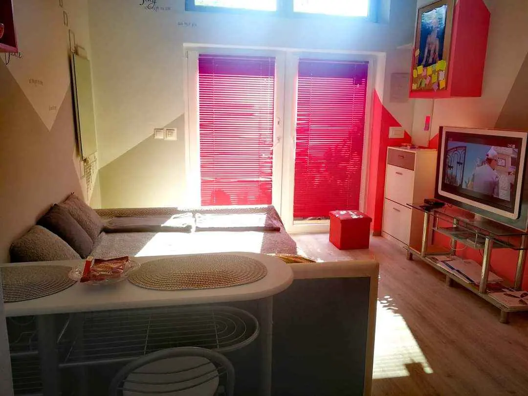 STUDIOLEILIGHET - 24 m2 + 16 m2 terrasse, egnet for 2 voksne og et lite barn (barneseng tilgjengelig, gratis). Egen inngang, parkering, wi-fi, satellitt-TV, air condition. Vaskemaskin. Nytt og moderne interiør. LEILIGHET 55 m2- ved siden av studioleiligheten, egnet for 2 voksne og 2 barn (en lastebilseng i stuen, 160 cm bred). Også parkering, wi-fi, satellitt-TV, air condition og vaskemaskin. Ekstra seng for baby eller eldre barn er mulig, gratis. Avstand fra sentrum av byen og strendene med sand og også med grus er 5 minutter til fots. I leiligheter finner du virkelig alt du trenger for oppholdet ditt! Utstyret til leiligheten er komplett, fra servise, sengetøy, håndklær, toalettpapir, sjampo for bad og vaskemidler, både på kjøkkenet og på badet, alt er i leiligheten du kan glemme. Pluss en ekstra overraskelse og en kald drink i kjøleskapet for å ønske deg velkommen! Noe annet du er interessert i, spør gjerne, vi er her for deg :-)