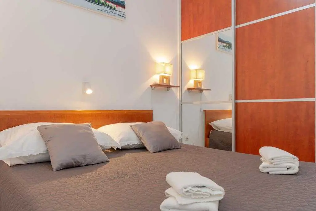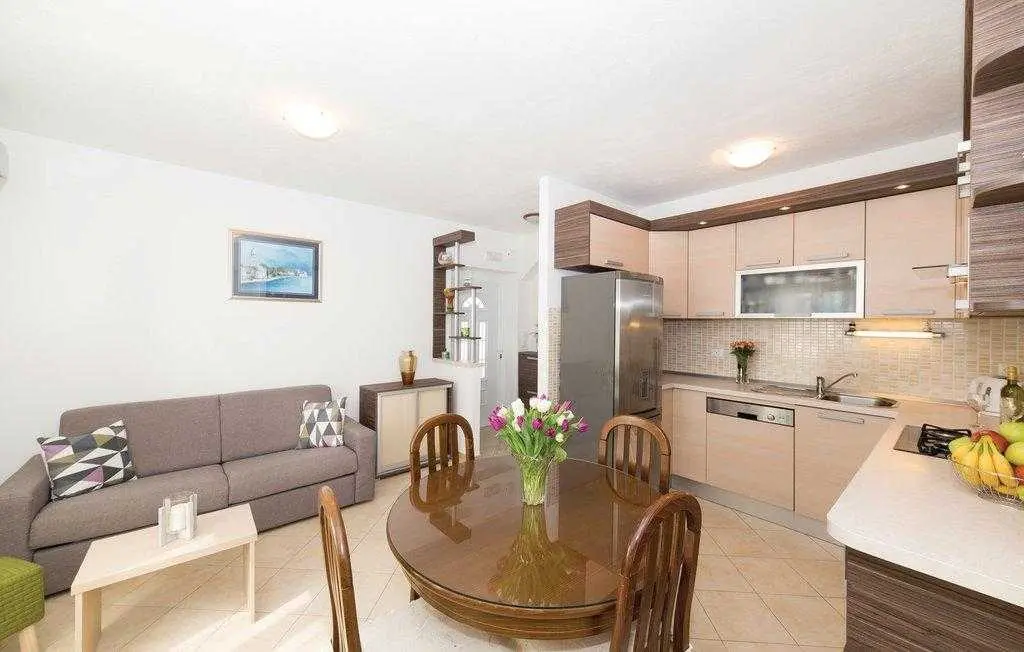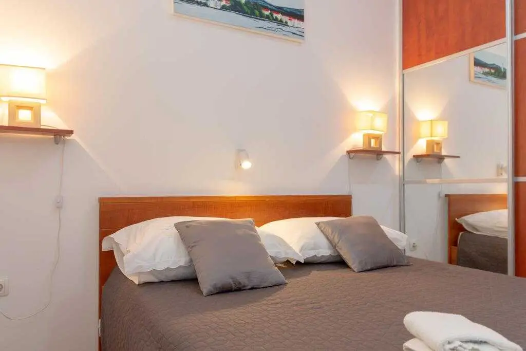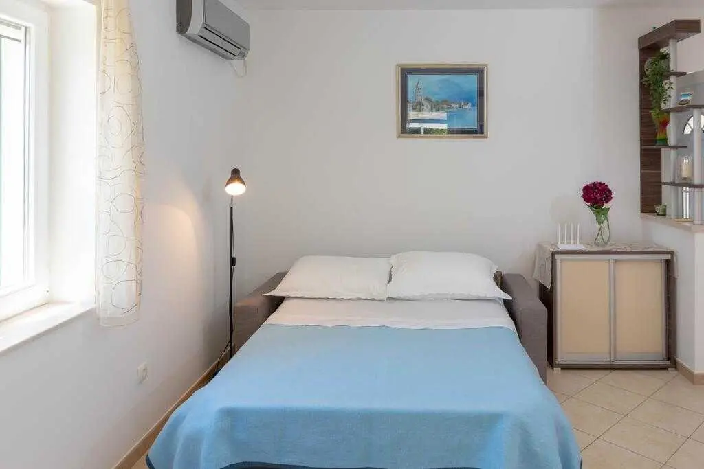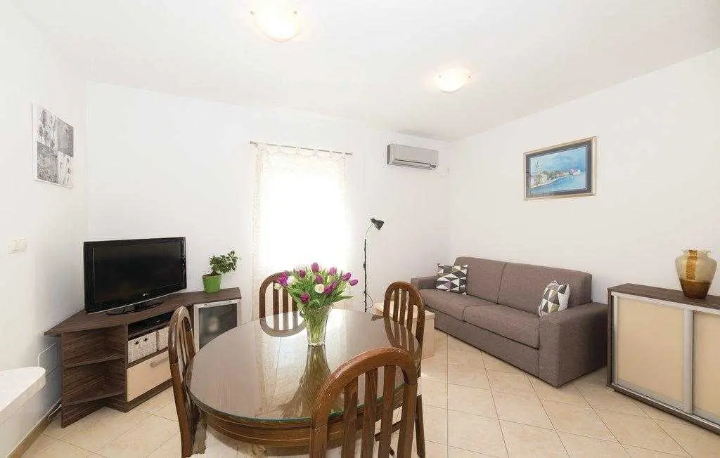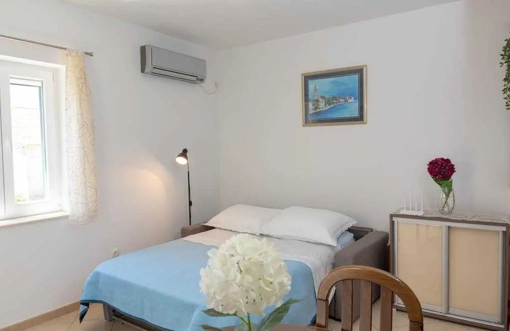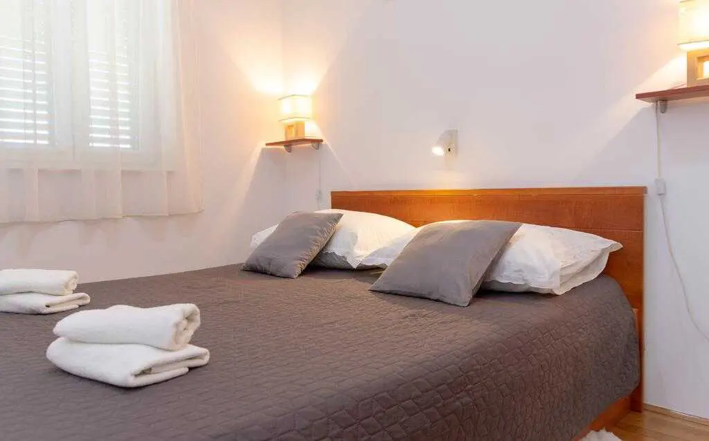 Leilighet Šimera (55m2 for maks 5 personer), et fint feriehus ligger i et lite og rolig sted Kaštel Štafilić mellom Trogir og Split, omgitt av familiehus og er ideelt for familier og par som leter etter fred og ro. Bare 30 meter fra sjøen og 2 minutters gange til nærmeste rullesteinstrand, tilbyr det klimaanlegg, kabel-TV, gratis Wi-Fi og en utendørs grill med hagemøbler. Huset strekker seg gjennom første etasje hvor det er et vaskerom og garasje i denne første etasje forbundet med utvendige trapper. Fra terrassen er det delvis utsikt over havet og landskapet. I hagen, bak huset, er lekeplassen tilrettelagt for de yngste besøkende. Leiligheten har balkong, to soverom, romslig stue, kjøkken med kokemuligheter, oppvaskmaskin, vaskemaskin og tørketrommel, vannkoker, stekeovn og eget bad. I nærheten av leilighetene har du alt du trenger: strand, pizzeria, restaurant-taverne, gatekjøkken, marked, supermarked, postkontor, bank, apotek, lekeplass for barn, kafébarer ...
