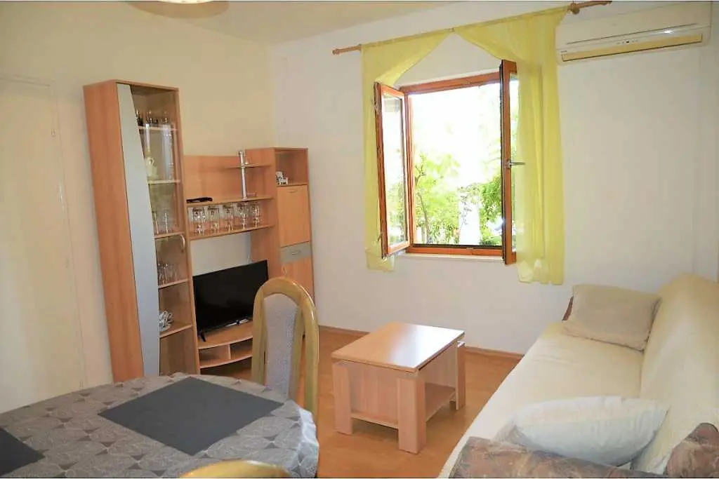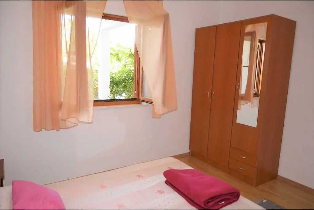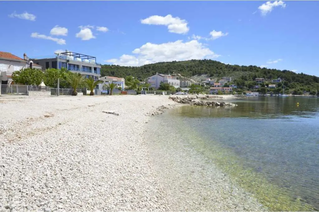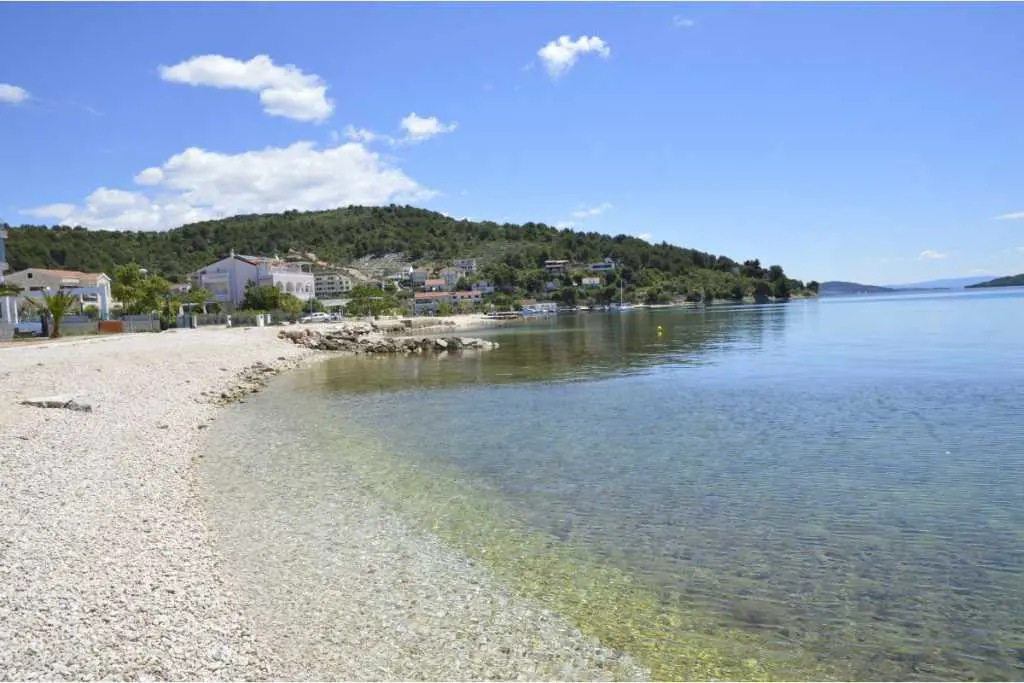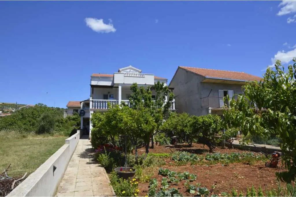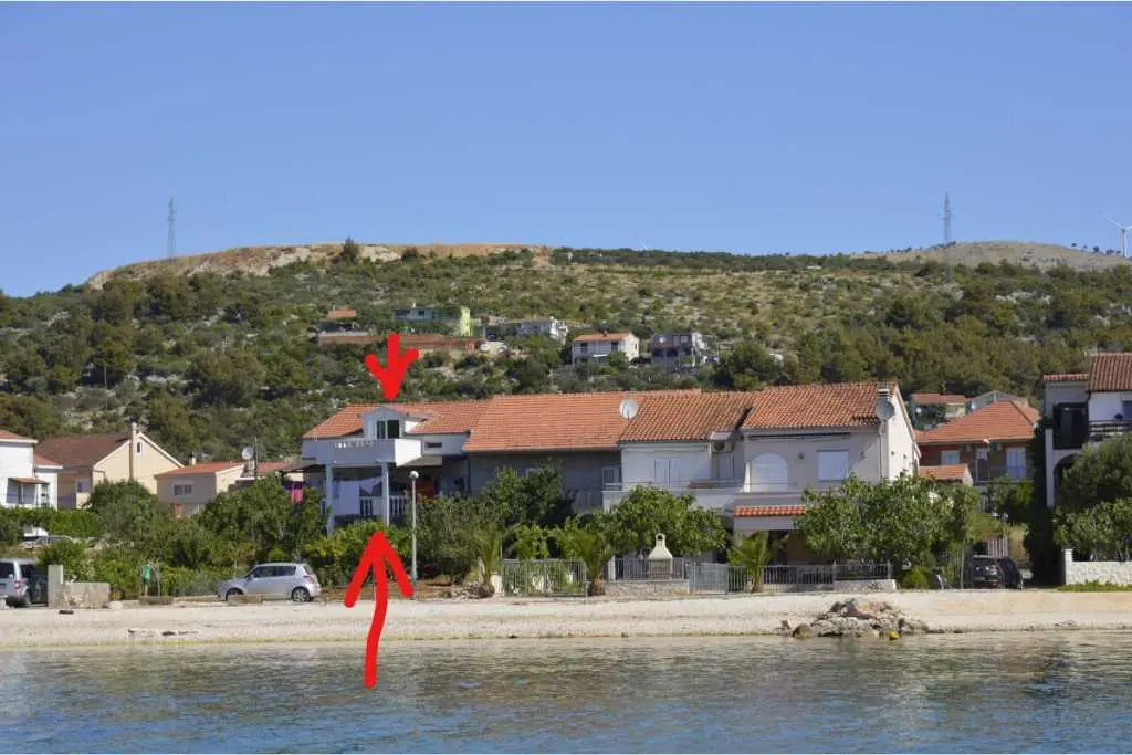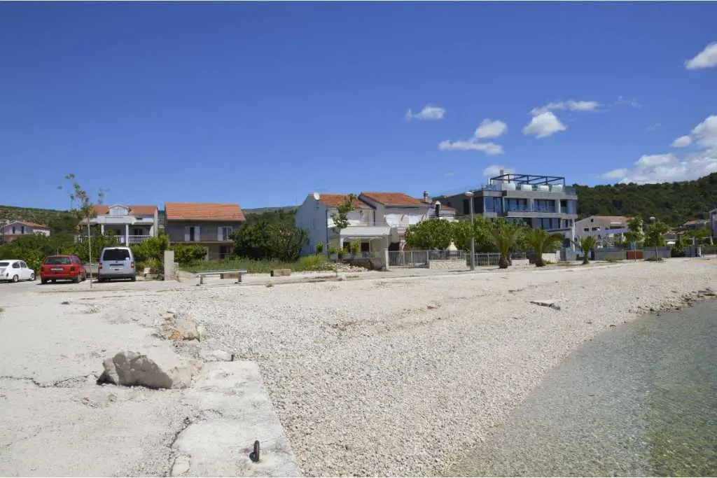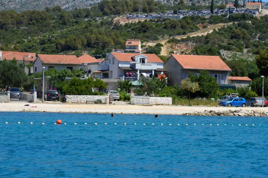 Rett på sjøen og 2 rullesteinstrender ET HELT HUSGULV MED TERRASSE I SKYGGEN (70 + 30 M2) Vår store 2-roms leilighet ligger i første linje fra sjøen og 2 rullesteinsstrender på lite sted Poljica. Rommet har plass til 4 voksne + 1 barn. Det er bare denne boenheten i huset, ingen andre gjester. Det er bare noen få skritt fra restauranter og kaffebarer. Leiligheten ligger i første etasje. Den har egen inngang og egen terrasse i skyggen. Det er 70 kvm stor + 30 kvm terrasse. Består av: 2 soverom (hvert med dobbeltseng, 1 ekstra seng), 1 bad med dusj, kjøkken med stue og spisestue (sovesofa for 1 person). Terrassen har ikke direkte utsikt over havet, men den er omgitt av grønne områder i hagen med Mediteranien-trær og grønnsaker som du kan plukke og lage mat. Fasiliteter: air condition, tv, wi-fi, sengetøy, håndklær, såpe, mikrobølgeovn, brødrister, mikser, vannkoker, kaffemaskin, vaskemaskin, kjøkkentepper og -rulle, toalettpapir, kjøkkenutstyr, grill, privat parkering.