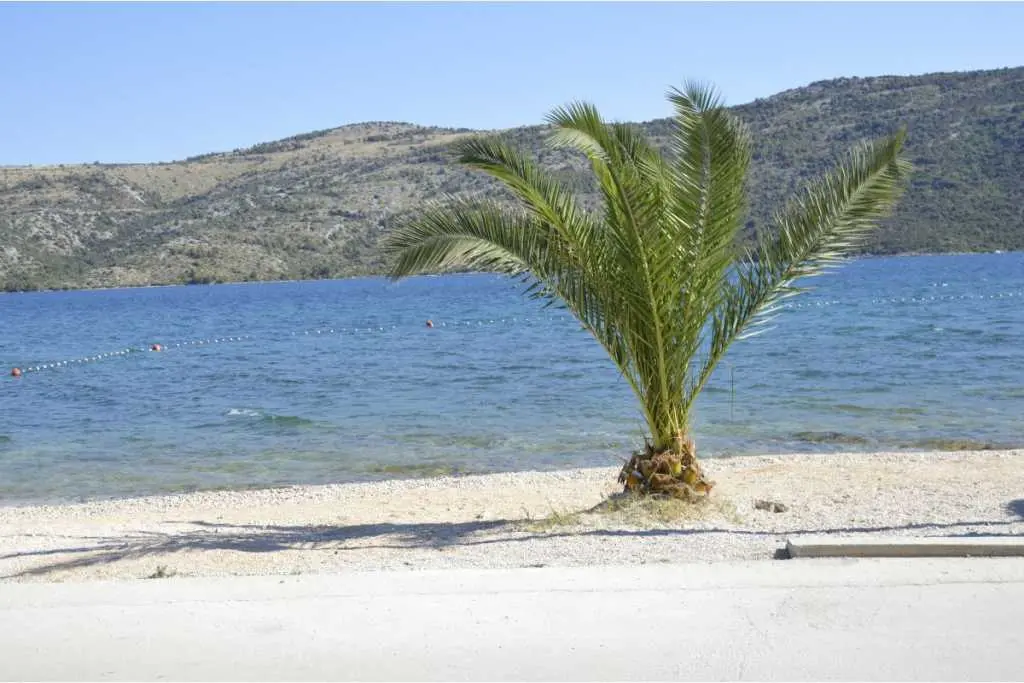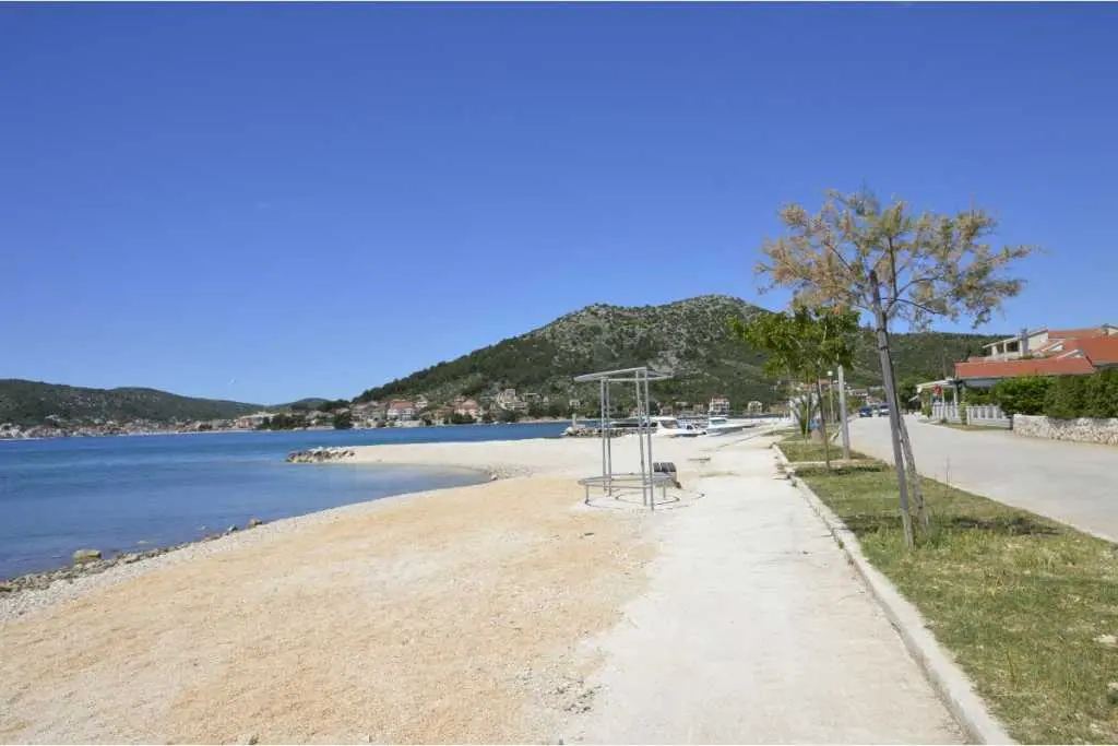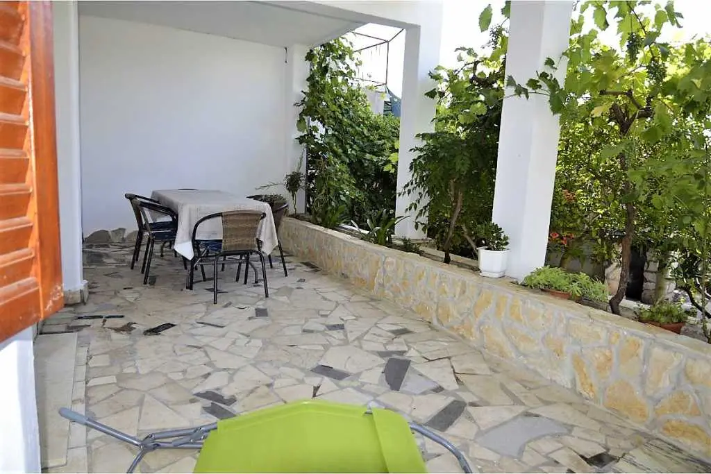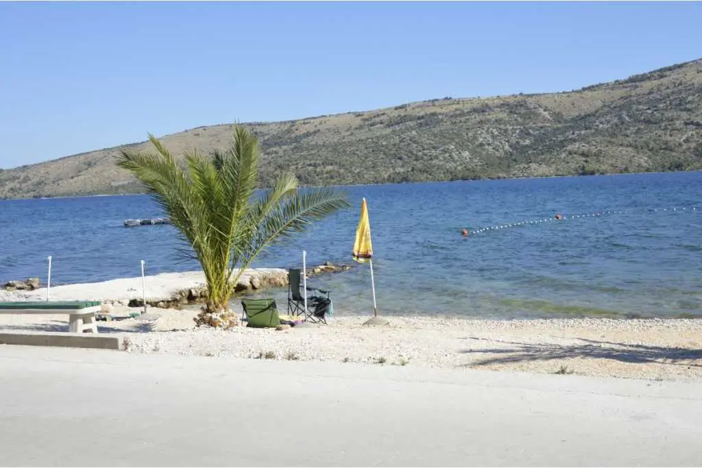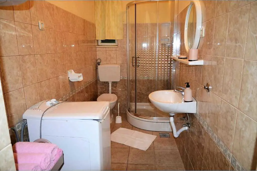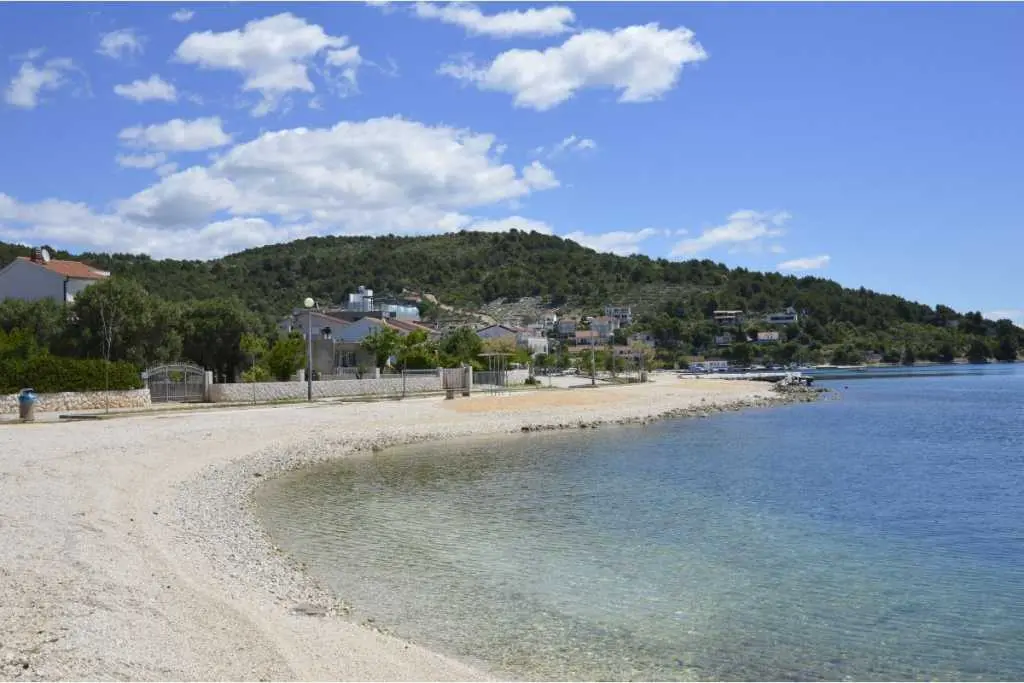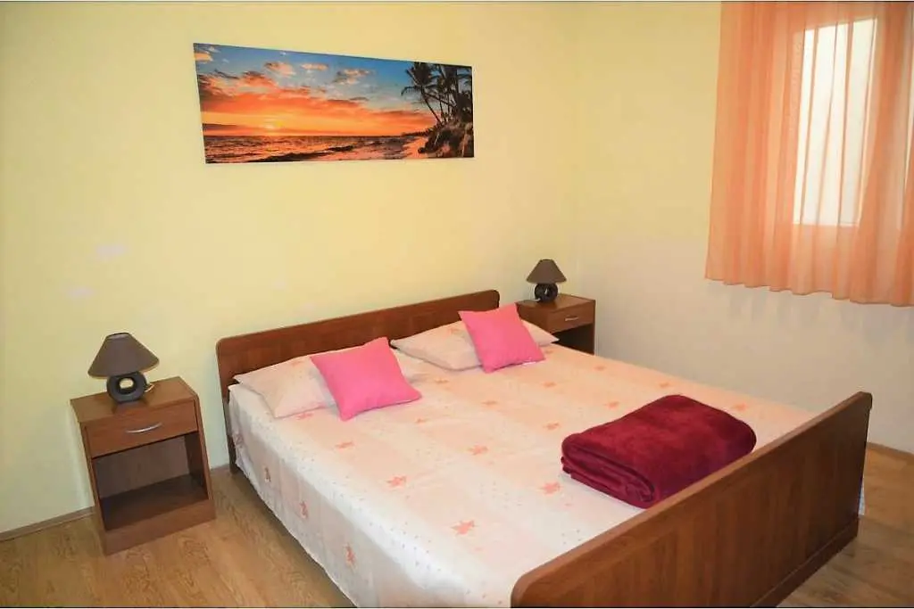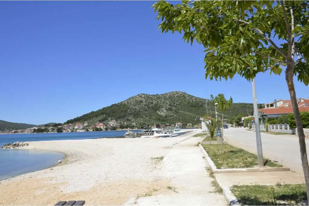 Rett på sjøen og 2 rullesteinstrender ET HELT HUSGULV MED TERRASSE I SKYGGEN (70 + 30 M2) Vår store 2-roms leilighet ligger i første linje fra sjøen og 2 rullesteinsstrender på lite sted Poljica. Rommet har plass til 4 voksne + 1 barn. Det er bare denne boenheten i huset, ingen andre gjester. Det er bare noen få skritt fra restauranter og kaffebarer. Leiligheten ligger i første etasje. Den har egen inngang og egen terrasse i skyggen. Det er 70 kvm stor + 30 kvm terrasse. Består av: 2 soverom (hvert med dobbeltseng, 1 ekstra seng), 1 bad med dusj, kjøkken med stue og spisestue (sovesofa for 1 person). Terrassen har ikke direkte utsikt over havet, men den er omgitt av grønne områder i hagen med Mediteranien-trær og grønnsaker som du kan plukke og lage mat. Fasiliteter: air condition, tv, wi-fi, sengetøy, håndklær, såpe, mikrobølgeovn, brødrister, mikser, vannkoker, kaffemaskin, vaskemaskin, kjøkkentepper og -rulle, toalettpapir, kjøkkenutstyr, grill, privat parkering.