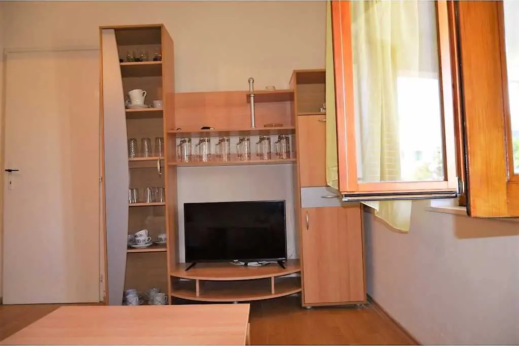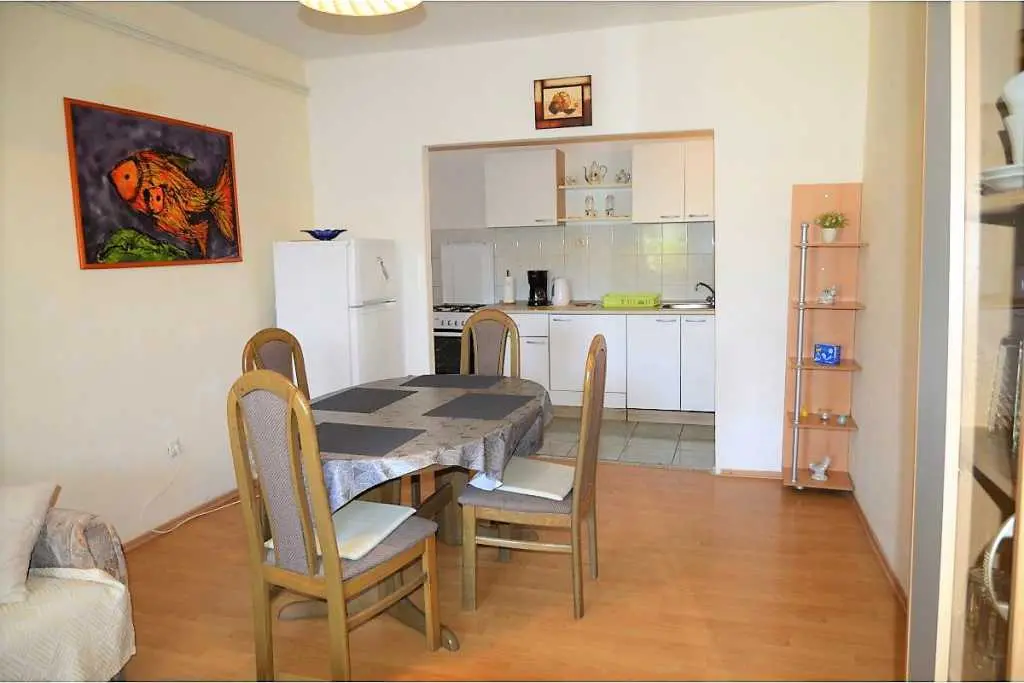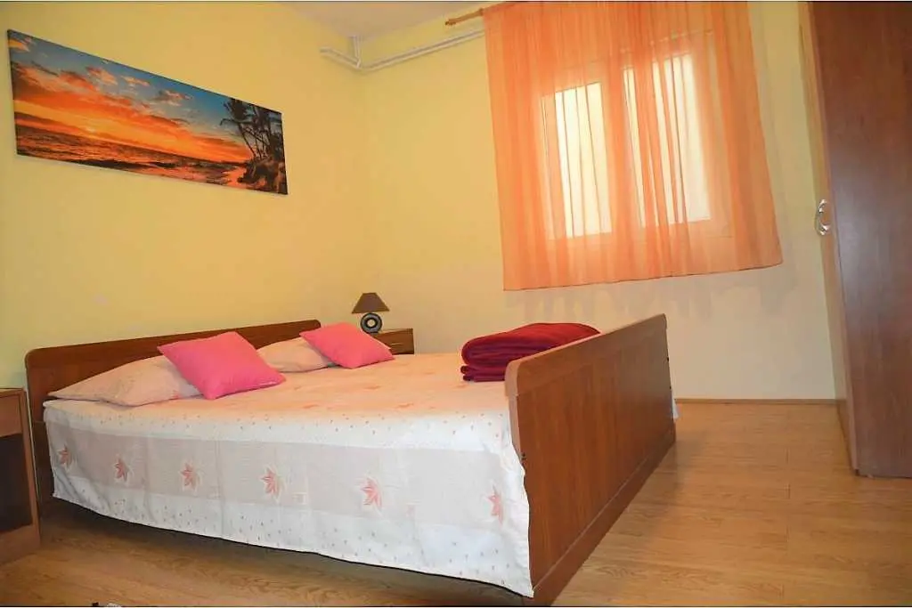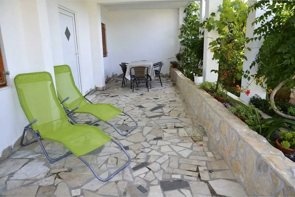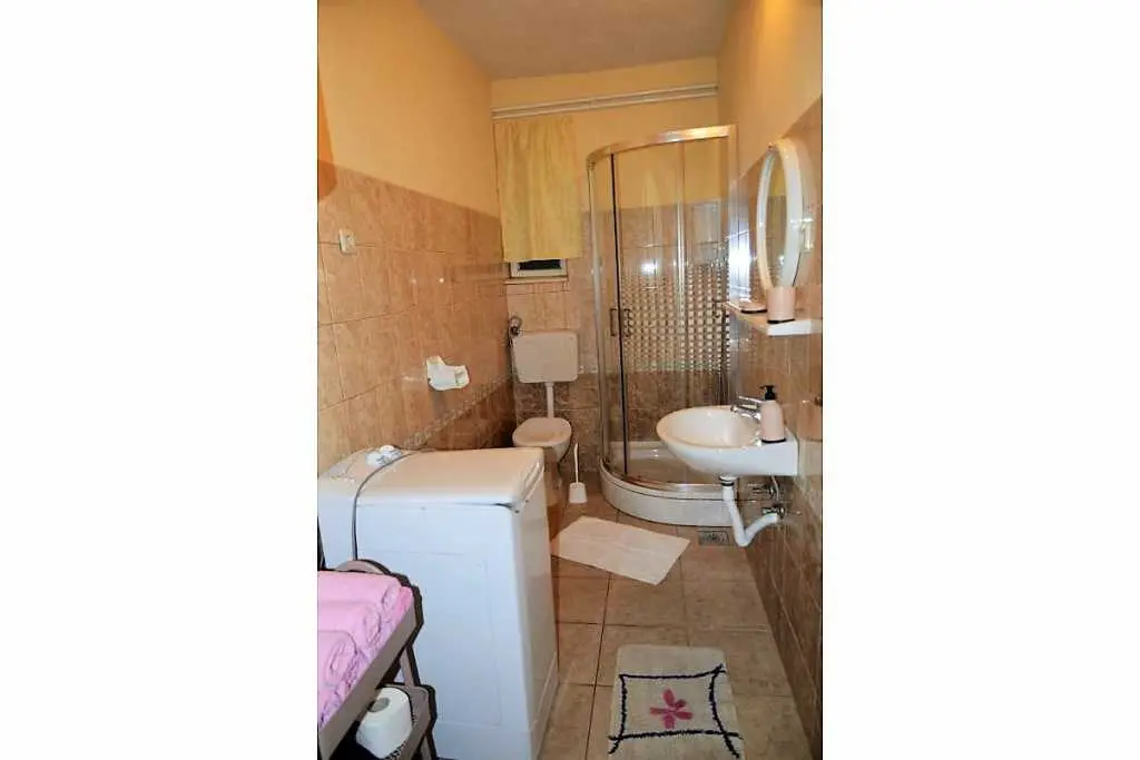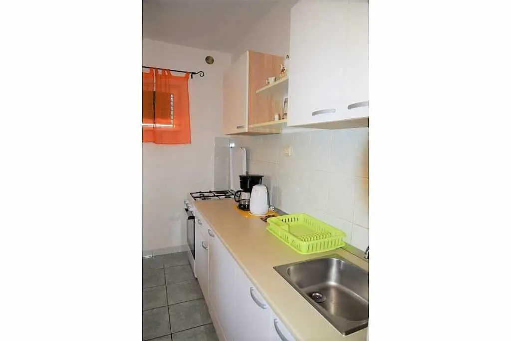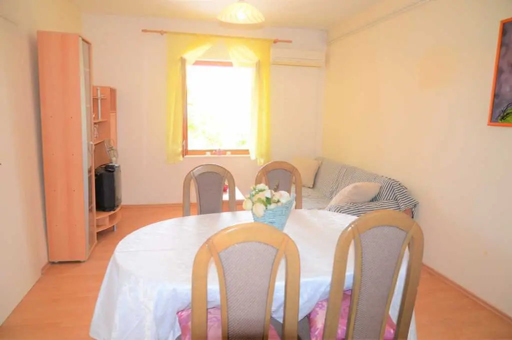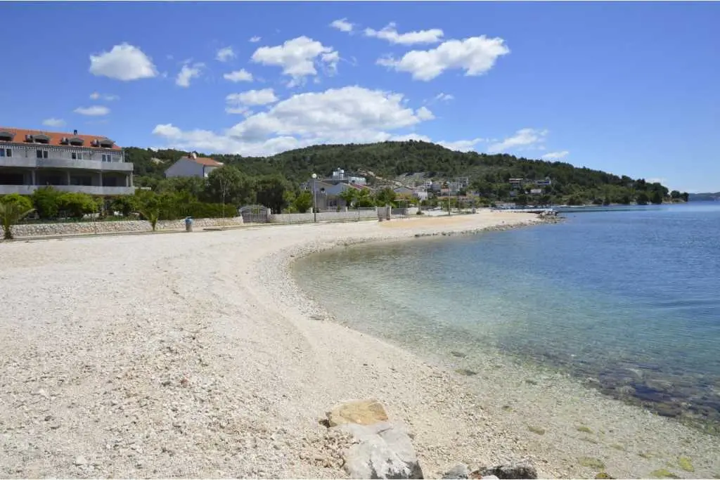 Rett på sjøen og 2 rullesteinstrender ET HELT HUSGULV MED TERRASSE I SKYGGEN (70 + 30 M2) Vår store 2-roms leilighet ligger i første linje fra sjøen og 2 rullesteinsstrender på lite sted Poljica. Rommet har plass til 4 voksne + 1 barn. Det er bare denne boenheten i huset, ingen andre gjester. Det er bare noen få skritt fra restauranter og kaffebarer. Leiligheten ligger i første etasje. Den har egen inngang og egen terrasse i skyggen. Det er 70 kvm stor + 30 kvm terrasse. Består av: 2 soverom (hvert med dobbeltseng, 1 ekstra seng), 1 bad med dusj, kjøkken med stue og spisestue (sovesofa for 1 person). Terrassen har ikke direkte utsikt over havet, men den er omgitt av grønne områder i hagen med Mediteranien-trær og grønnsaker som du kan plukke og lage mat. Fasiliteter: air condition, tv, wi-fi, sengetøy, håndklær, såpe, mikrobølgeovn, brødrister, mikser, vannkoker, kaffemaskin, vaskemaskin, kjøkkentepper og -rulle, toalettpapir, kjøkkenutstyr, grill, privat parkering.
