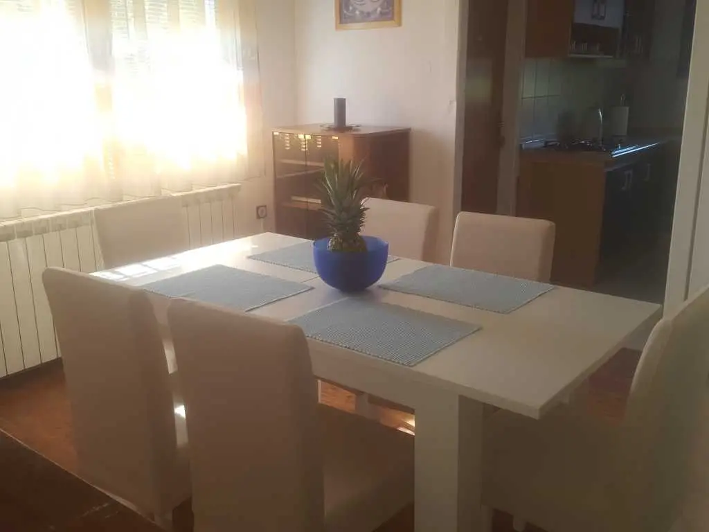 Apartment Sun ligger veldig nær sentrum. Interiøret er veldig spesielt og smakfullt utstyrt med alle nødvendige fasiliteter som sørger for et behagelig og avslappende opphold. Den har tre soverom, en stor stue med utgang til terrasse, spisestue, kjøkken og bad. Rommene har en kapasitet på 5 personer, og to sovesofaer er i stuen, så den totale kapasiteten er for 7 personer. Det er en mulighet for å bruke utegrillen. Leiligheten ligger i rolige omgivelser og har egen parkering. Ogulin er rik på mange naturlige skjønnheter. Det er Frankopan-slottet, yssulin-avgrunnen, Klekfjellet, Sabljaci-sjøen og mange andre skjønnheter. Avstanden til Plitvice Lakes er 53 km, Zagreb 100 km etc.
