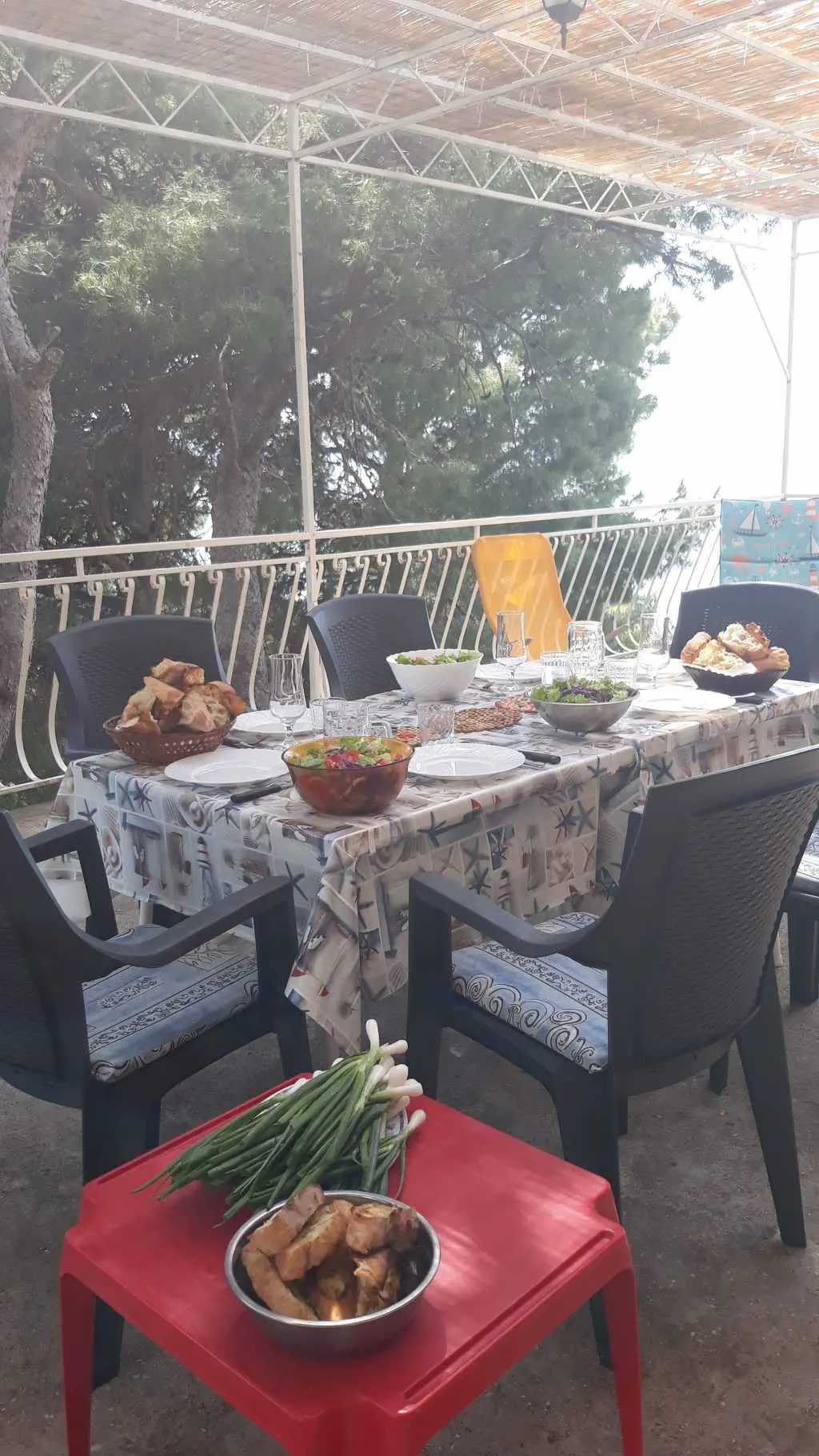 Hus nær sjøen omgitt av privat tre, med 2 leiligheter, en 2 + 1 og en 6 + 1, begge ser mot havet. Leilighetene har aircondition, Ap. 2 + 1 har ett separat dobbeltseng og stue hvor det er kjøkken og klikk-klaff sofa, bad, balkong. Ap. 6 + 1 har 3 dobbeltsenger, stue med klaff-sofa, kjøkken, bad, toalett, stort terrasse.