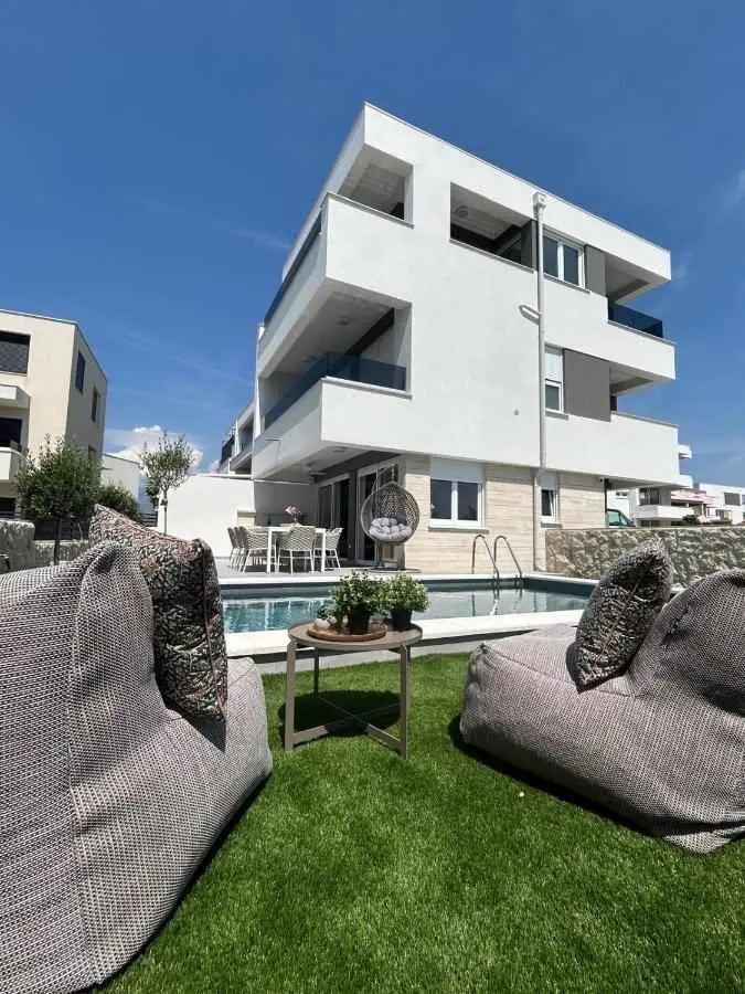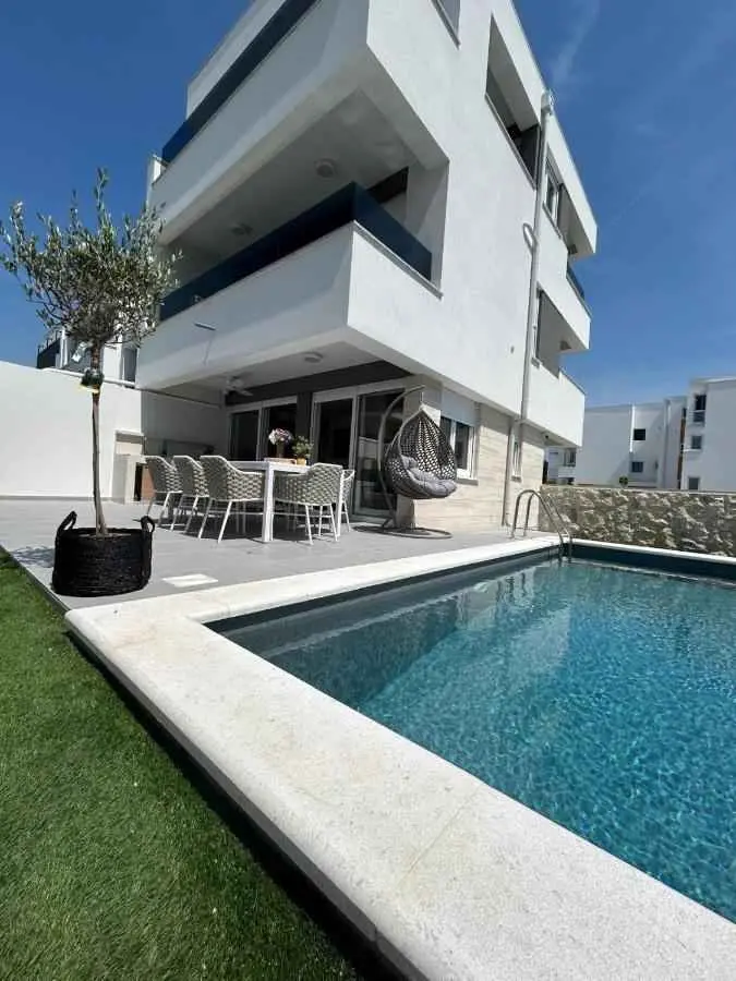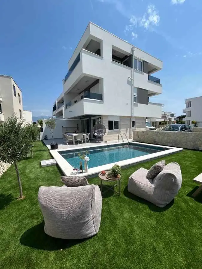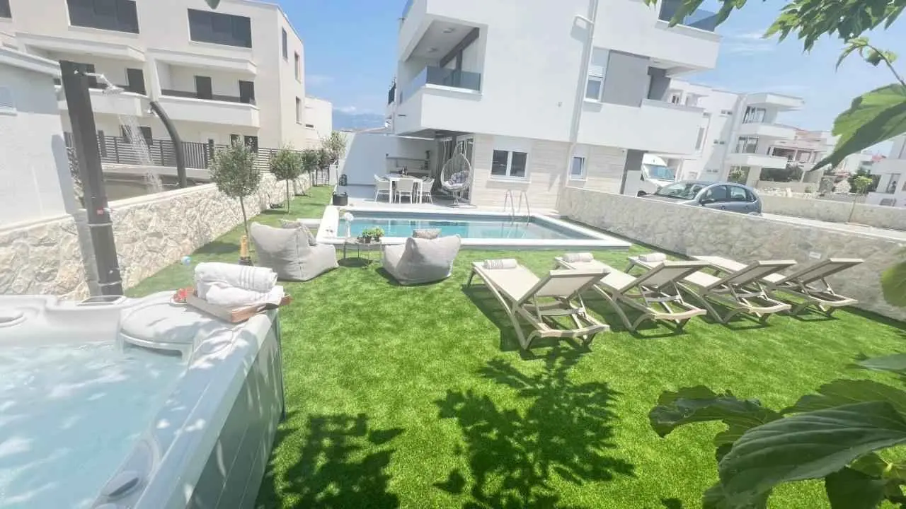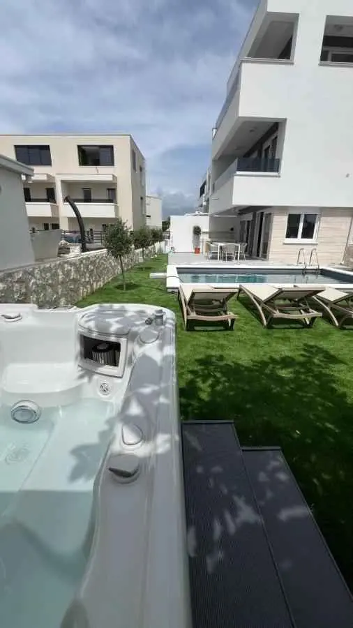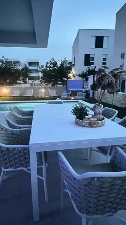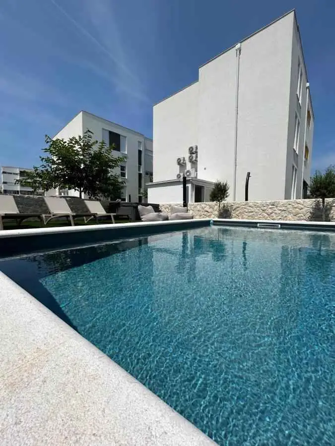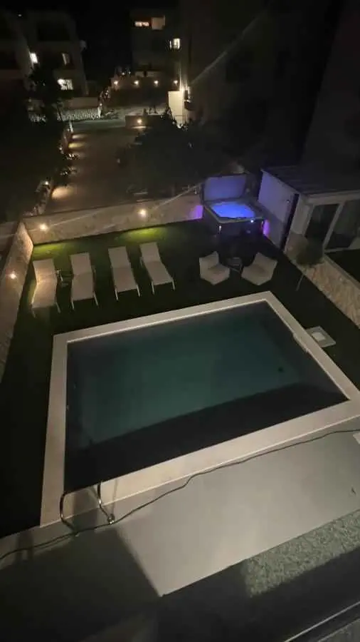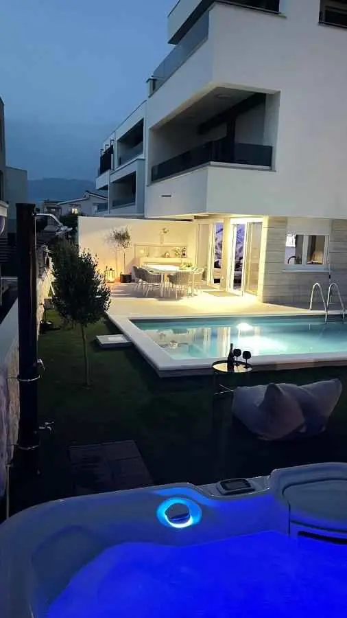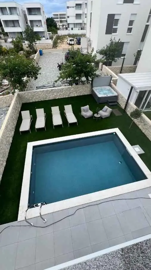 Luxury apartment Black Pearl Beluga with private Pool and Jacuzzi ligger i Novalja, og tilbyr overnatting med eget basseng, gratis Wi-Fi og avgiftsfri privat parkering for gjester som kjører. Boenhetene har klimaanlegg og ligger 300 meter fra Lokunje-stranden. Leiligheten har et boblebad og en døgnåpen resepsjon. Den romslige leiligheten har 3 soverom, 3 bad, sengetøy, håndklær, flatskjerm-TV, spiseplass, fullt utstyrt kjøkken og terrasse med utsikt over bassenget. For ekstra personvern har boligen egen inngang og er beskyttet av heldagssikkerhet. Du kan også slappe av i hagen. Strasko-stranden ligger 1,1 km fra leiligheten, mens Braničevica-stranden ligger 2,5 km unna. Nærmeste flyplass er Zadar, 84 km fra Luxury apartment Sun with private Pool and Jacuzzi, og eiendommen tilbyr flyplasstransport mot et pristillegg