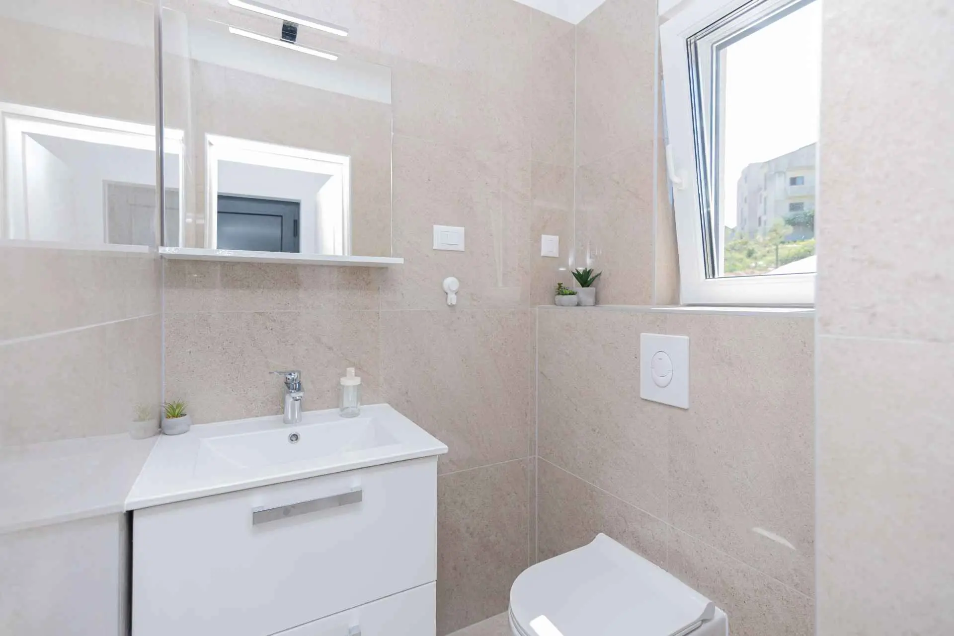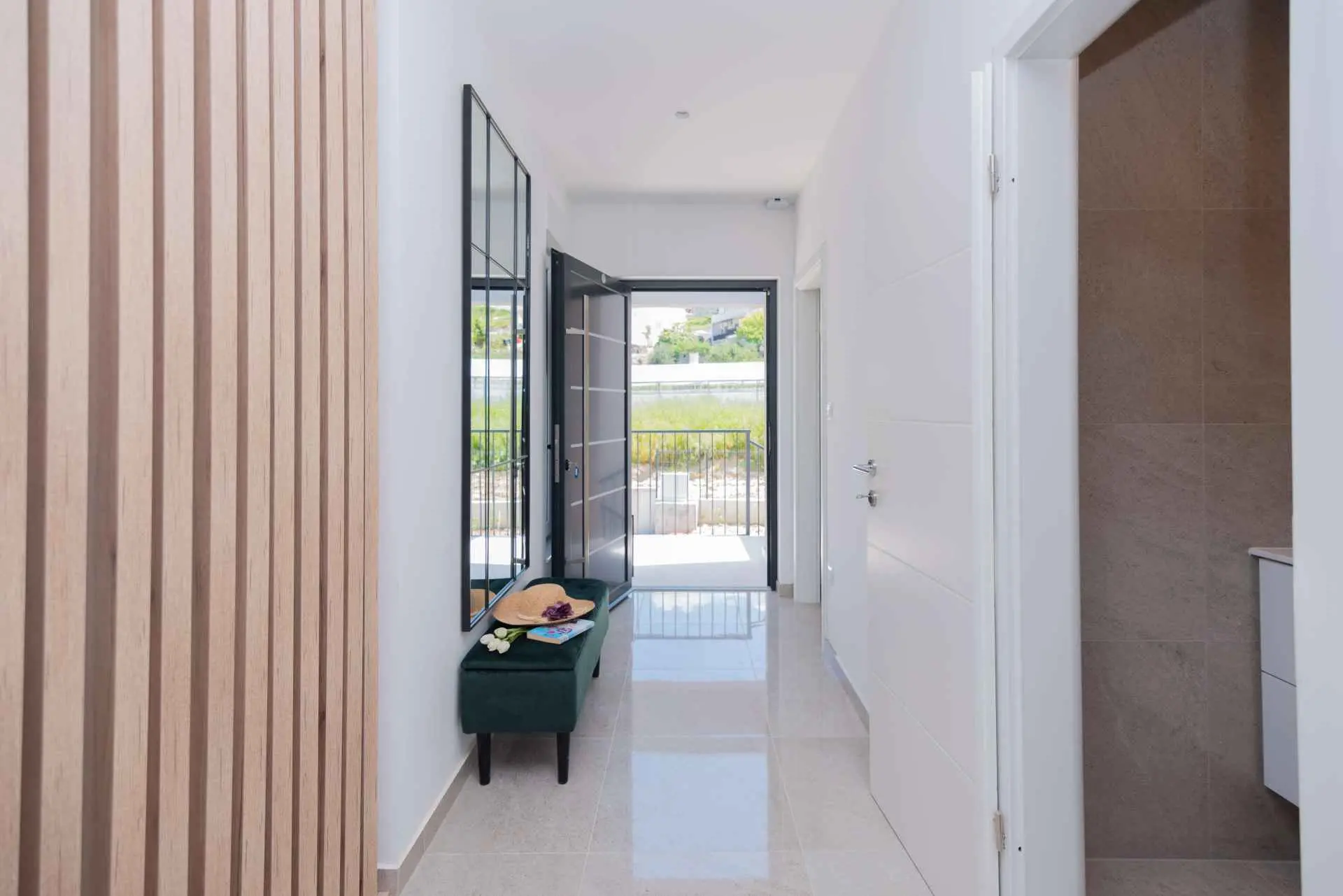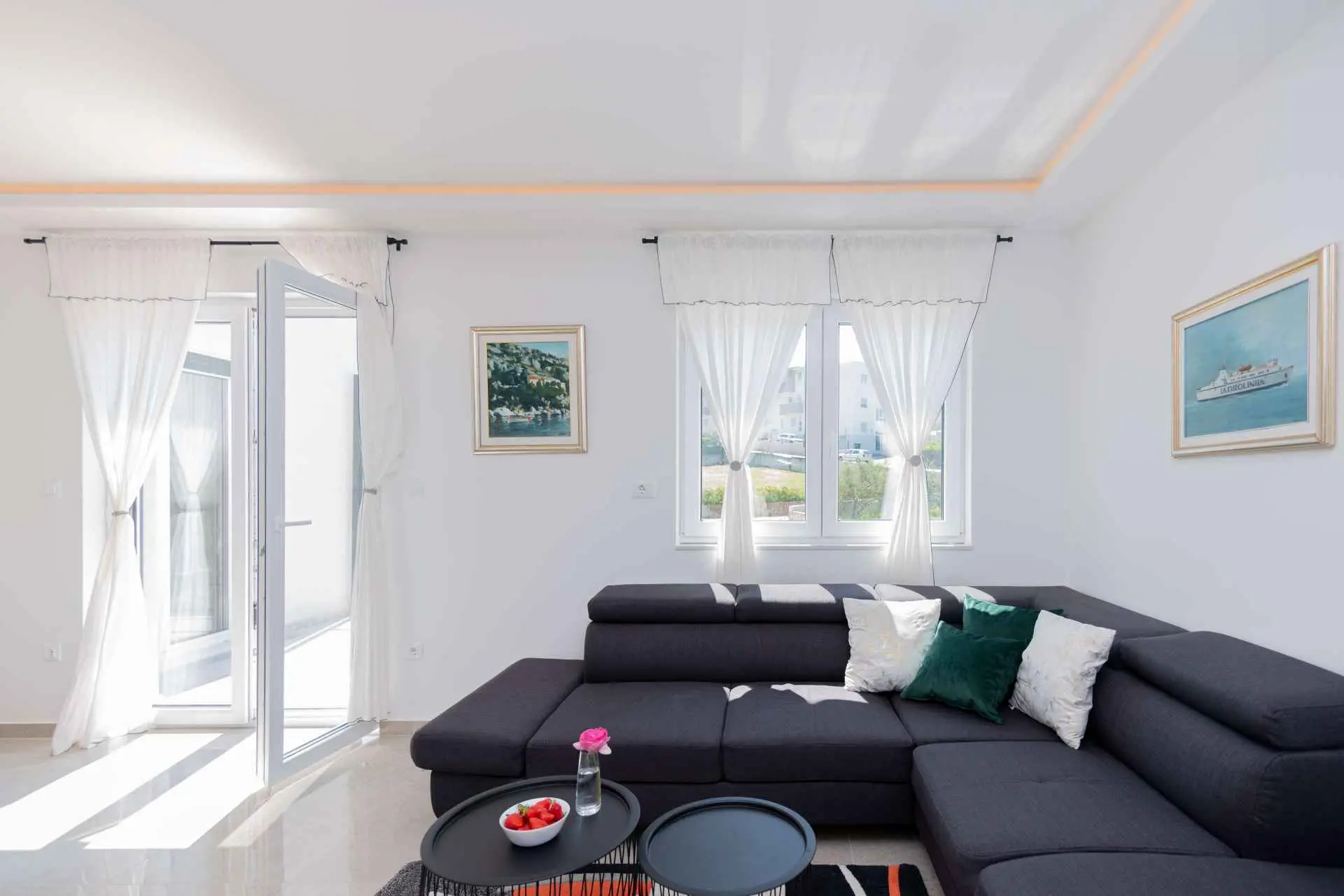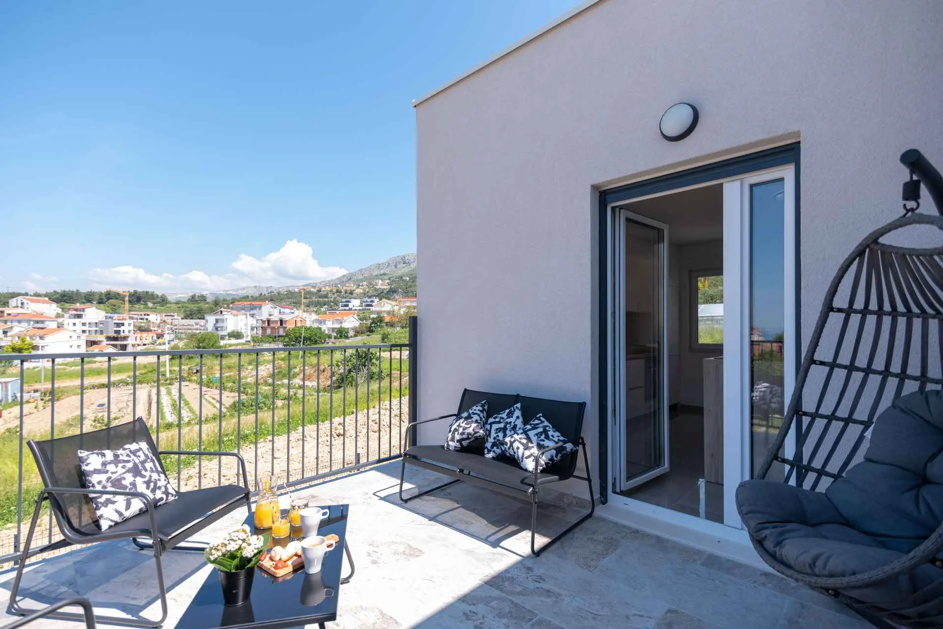 Nyt en ferie med familien i dette fullt utstyrte moderne hjemmet med uteplass og bakgård. Det nybygde huset ligger i en rolig og romslig landsby med vakker utsikt, 200 meter fra sjøen. I den romslige bakgården kan barna nyte det grønne gresset, svinge eller hoppe på trampolinen. For de eldre er det en terrasse hvor du kan se vakre solnedganger og hvile. Gjestene kan bruke sommerkjøkkenet hvor du kan grille og holde deg i frisk luft. Plassen Gjestene har tilgang til første etasje og første etasje. Hver etasje er fullt innredet med kjøkken, spisestue, stue. Det er også vaskerom, rom med eget bad, gjestetoalett... Leilighet i første etasje: Har plass til 4 voksne + 2 barn på en ekstra seng. Den har et fullt utstyrt kjøkken, spisestue, stue og 2 soverom med eget bad og ett gjestetoalett. Gjestene har tilgang til et vaskerom i et separat rom, et strykejern og et strykebrett. Leilighet i andre etasje: Leiligheten ligger i første etasje. Inngang til oppføringen via trapp på utsiden. Den har plass til 4 personer. Den har et fullt utstyrt kjøkken, spisestue, stue og 2 soverom med eget bad og ett gjestetoalett. Gjestene har tilgang til et vaskerom i et separat rom, et strykejern og et strykebrett. ✓ Smart TV ✓ WIFI ✓ Elektriske rulleskodder ✓ Aircondition i rom og spisestue ✓ Trygg Avstanden til nærmeste strand er 600m fra huset eller 7 minutter lett gange. På stranden kan du komme over en håndfull serveringssteder. I sommermånedene er det ulike fasiliteter som utflukter til de omkringliggende øyene, massasjer med utsikt over havet og adrenalinsport. Hvis du kommer på ferie uten personlig bil, har du ingen bekymringer fordi den nærmeste busstasjonen ligger 450 meter fra huset, det vil si en 6-minutters lett gange. Du kan ta buss til stedet på vei til Split eller Omis. En taxi er også tilgjengelig. I nærheten av huset er det en liten lokal butikk 220m eller 3 minutters gange unna. Det er også en større butikk 500 meter unna (7 minutters gange fra huset). Avstand fra viktigere steder: • Diokletians palass - 10,3 km • Split fergehavn - 10,6 km • Bačvice-stranden - 10,0 km • Marjan Park Viewpoint - 13,1 km • Žnjan - 9,0 km • Split lufthavn - 30,5 km