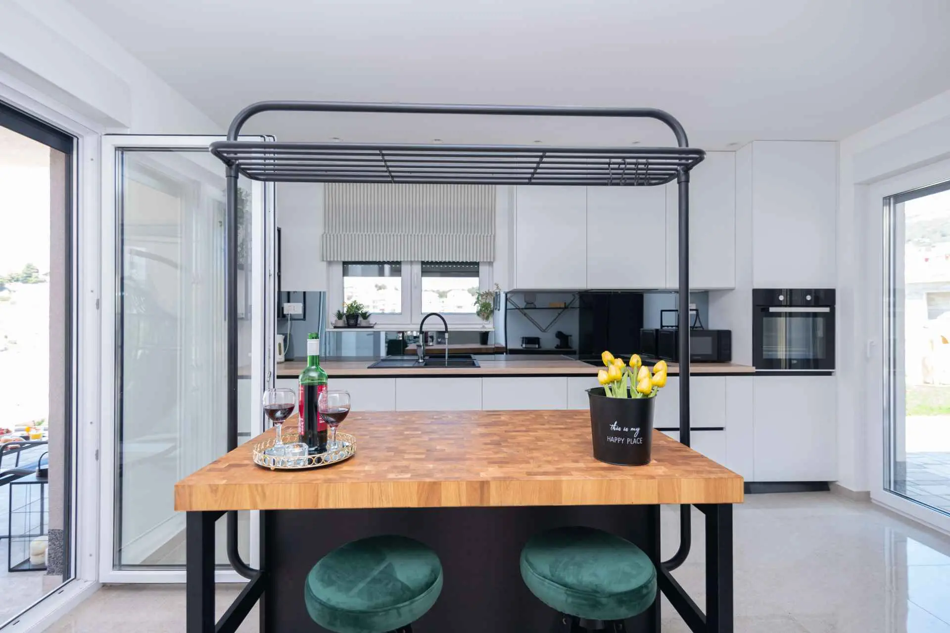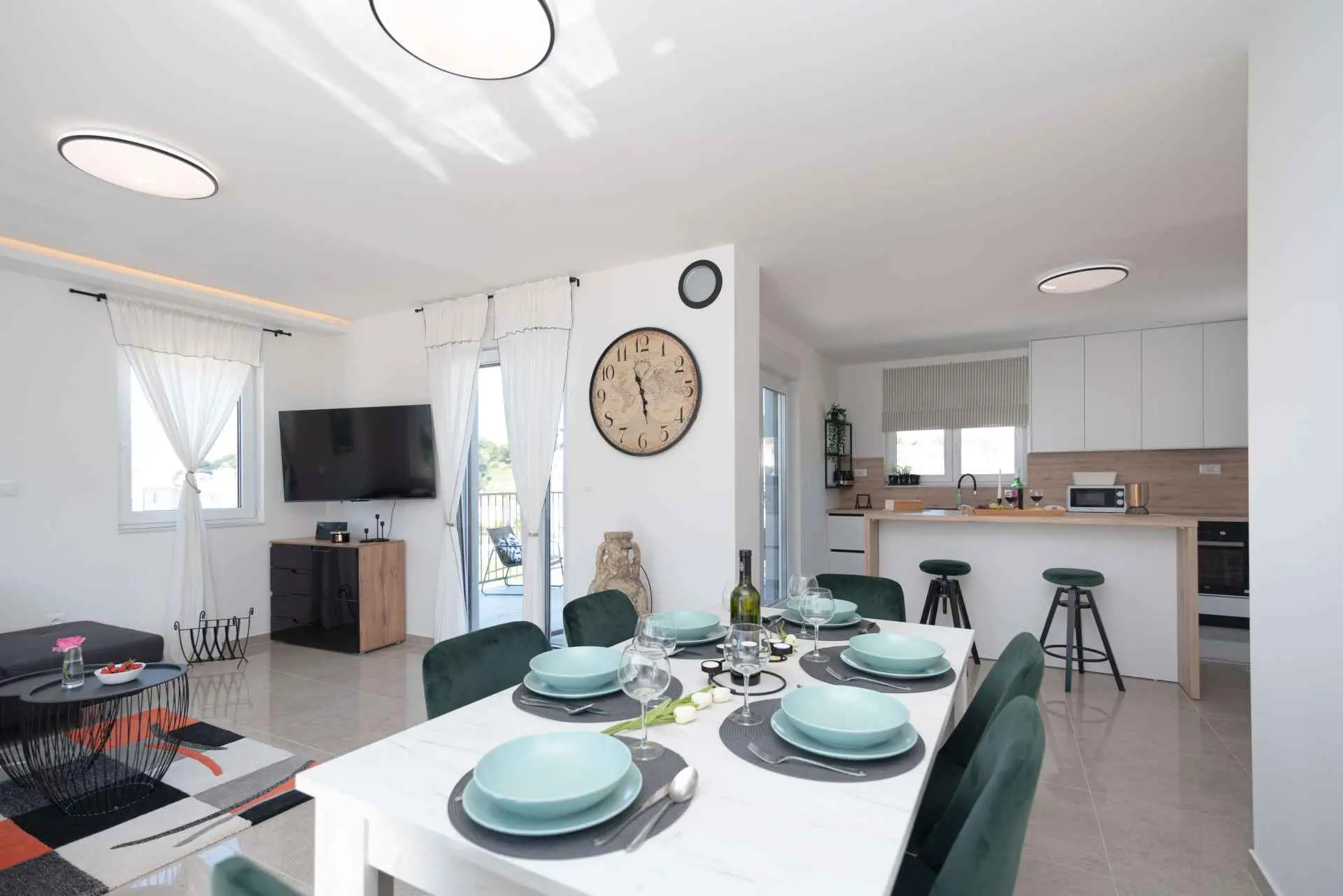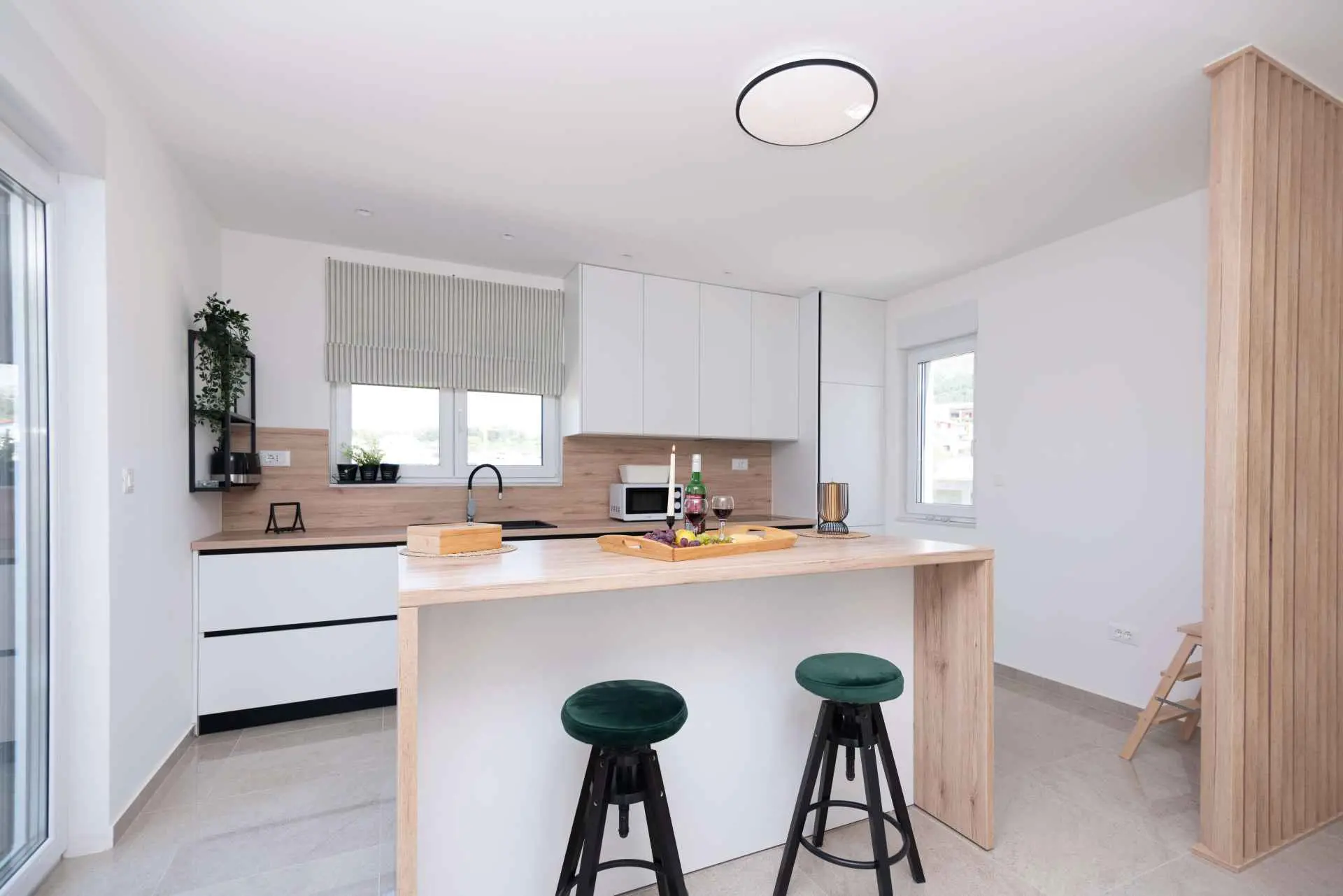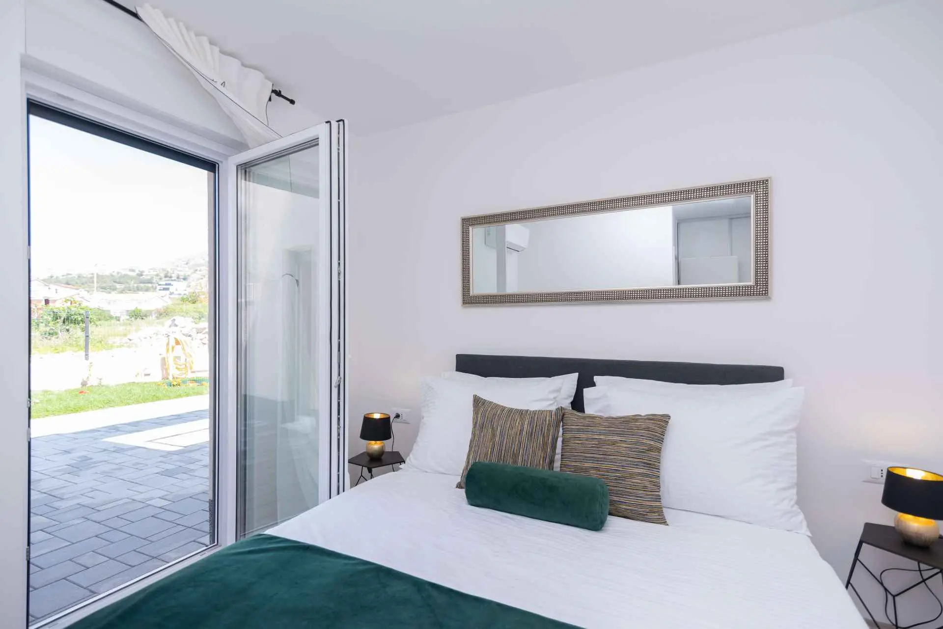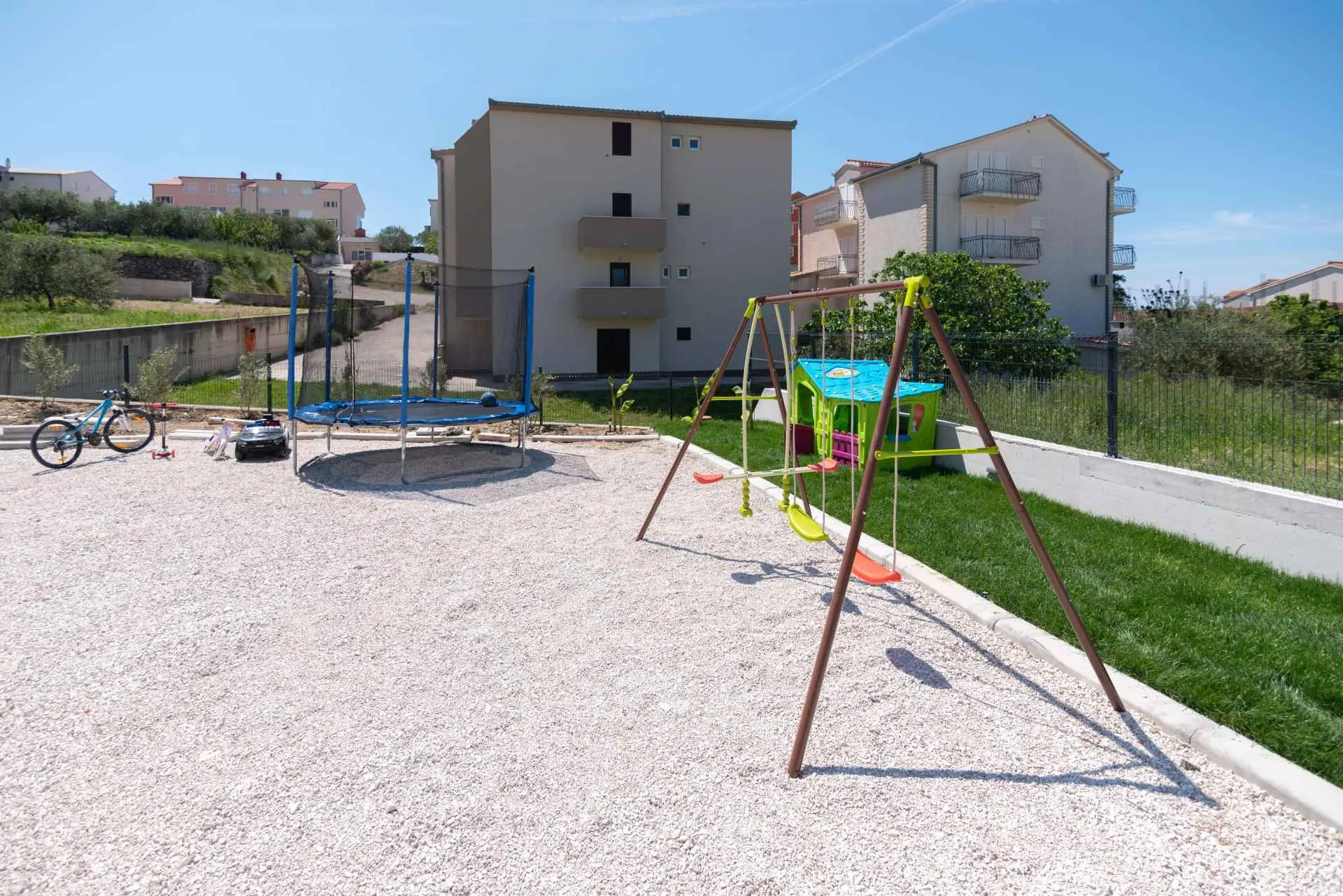 Nyt en ferie med familien i dette fullt utstyrte moderne hjemmet med uteplass og bakgård. Det nybygde huset ligger i en rolig og romslig landsby med vakker utsikt, 200 meter fra sjøen. I den romslige bakgården kan barna nyte det grønne gresset, svinge eller hoppe på trampolinen. For de eldre er det en terrasse hvor du kan se vakre solnedganger og hvile. Gjestene kan bruke sommerkjøkkenet hvor du kan grille og holde deg i frisk luft. Plassen Gjestene har tilgang til første etasje og første etasje. Hver etasje er fullt innredet med kjøkken, spisestue, stue. Det er også vaskerom, rom med eget bad, gjestetoalett... Leilighet i første etasje: Har plass til 4 voksne + 2 barn på en ekstra seng. Den har et fullt utstyrt kjøkken, spisestue, stue og 2 soverom med eget bad og ett gjestetoalett. Gjestene har tilgang til et vaskerom i et separat rom, et strykejern og et strykebrett. Leilighet i andre etasje: Leiligheten ligger i første etasje. Inngang til oppføringen via trapp på utsiden. Den har plass til 4 personer. Den har et fullt utstyrt kjøkken, spisestue, stue og 2 soverom med eget bad og ett gjestetoalett. Gjestene har tilgang til et vaskerom i et separat rom, et strykejern og et strykebrett. ✓ Smart TV ✓ WIFI ✓ Elektriske rulleskodder ✓ Aircondition i rom og spisestue ✓ Trygg Avstanden til nærmeste strand er 600m fra huset eller 7 minutter lett gange. På stranden kan du komme over en håndfull serveringssteder. I sommermånedene er det ulike fasiliteter som utflukter til de omkringliggende øyene, massasjer med utsikt over havet og adrenalinsport. Hvis du kommer på ferie uten personlig bil, har du ingen bekymringer fordi den nærmeste busstasjonen ligger 450 meter fra huset, det vil si en 6-minutters lett gange. Du kan ta buss til stedet på vei til Split eller Omis. En taxi er også tilgjengelig. I nærheten av huset er det en liten lokal butikk 220m eller 3 minutters gange unna. Det er også en større butikk 500 meter unna (7 minutters gange fra huset). Avstand fra viktigere steder: • Diokletians palass - 10,3 km • Split fergehavn - 10,6 km • Bačvice-stranden - 10,0 km • Marjan Park Viewpoint - 13,1 km • Žnjan - 9,0 km • Split lufthavn - 30,5 km
