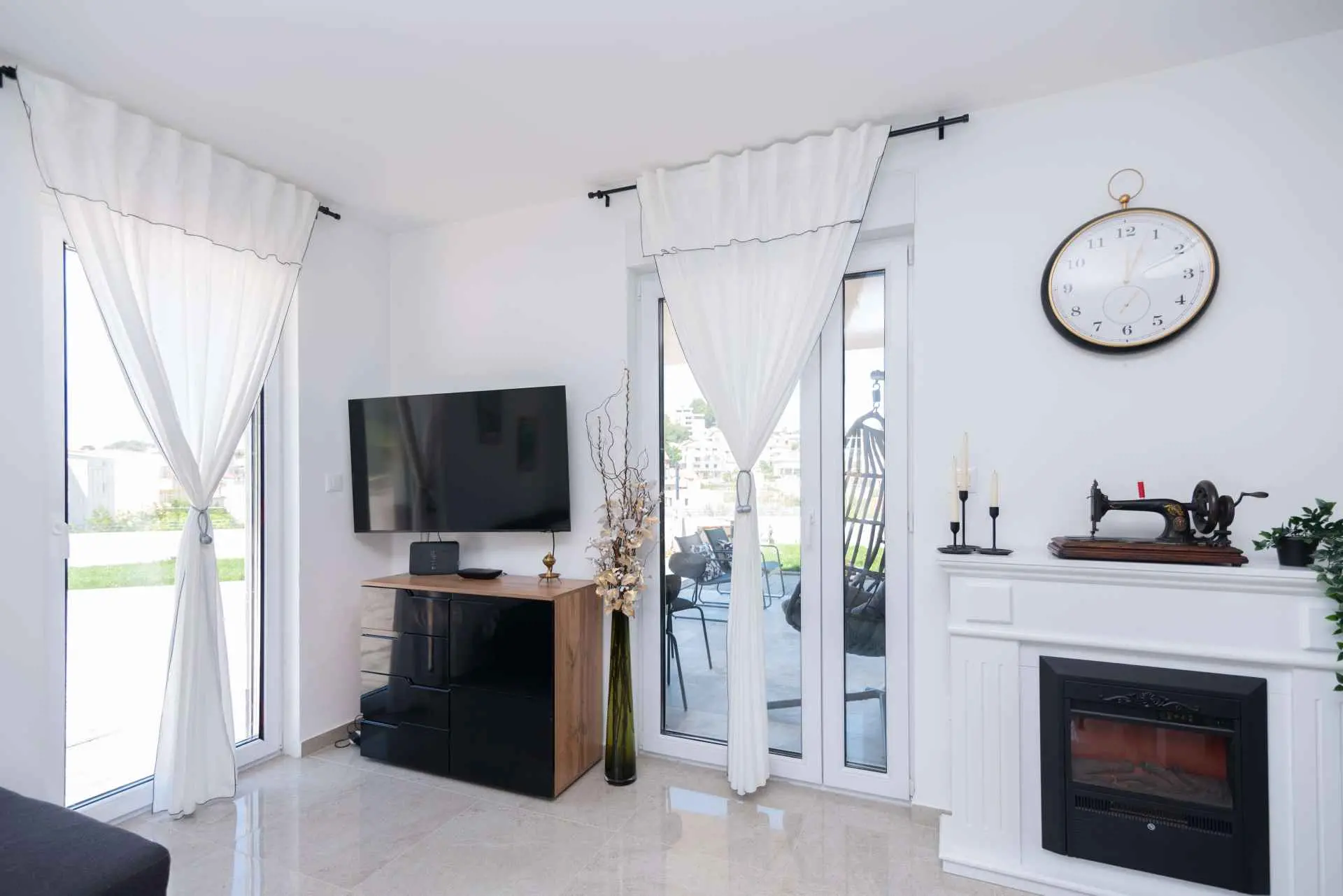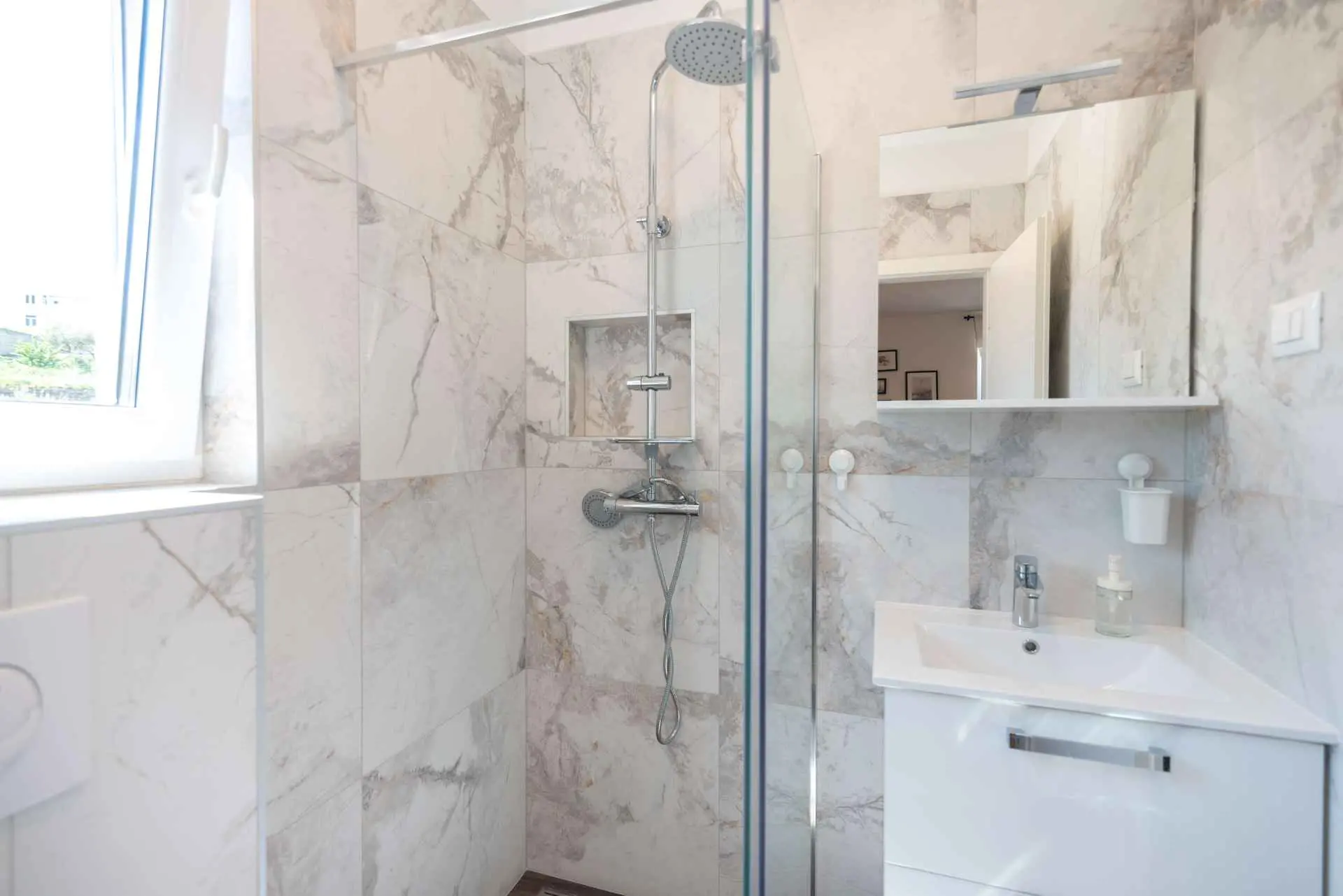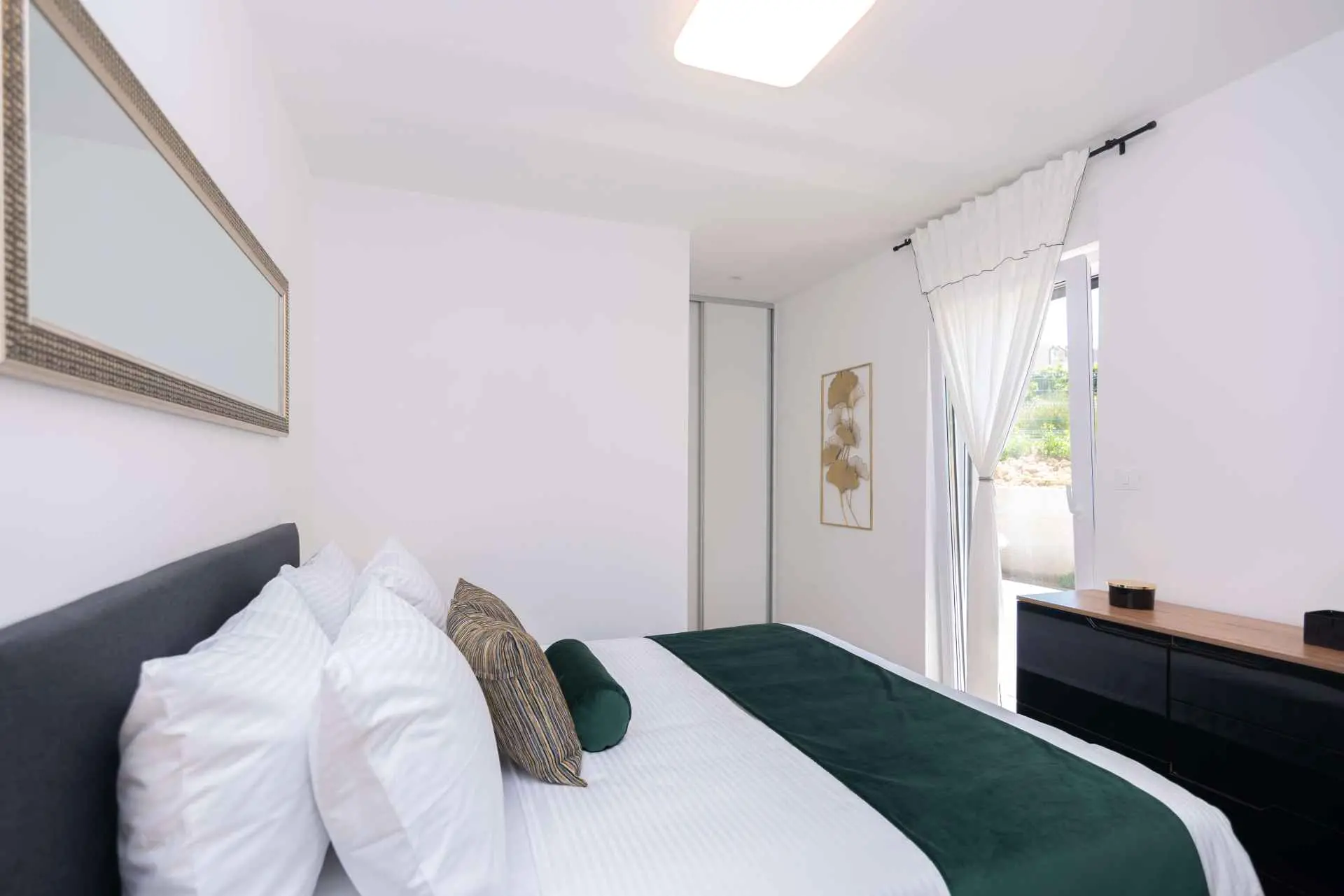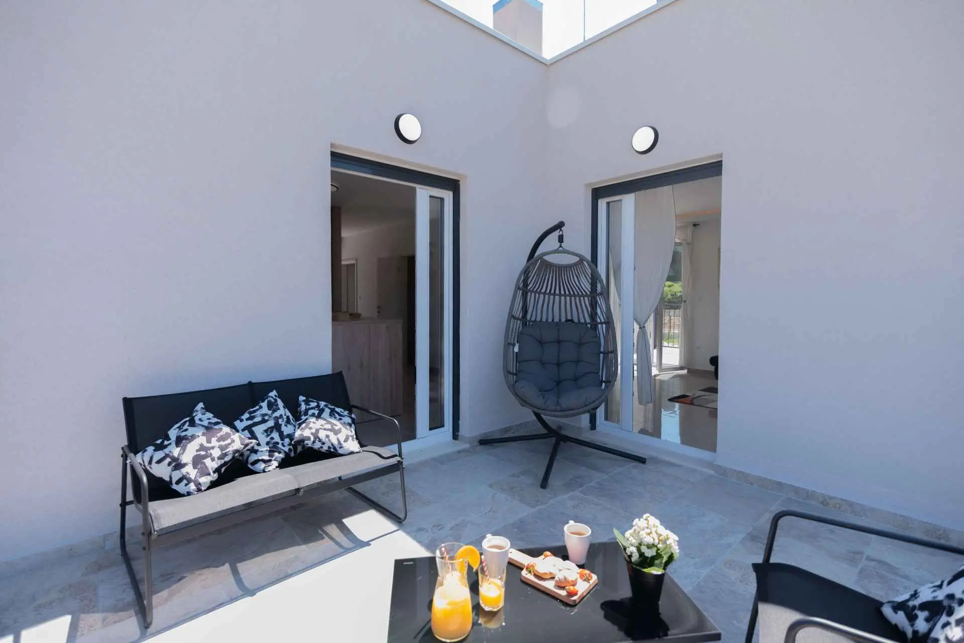 Nyt en ferie med familien i dette fullt utstyrte moderne hjemmet med uteplass og bakgård. Det nybygde huset ligger i en rolig og romslig landsby med vakker utsikt, 200 meter fra sjøen. I den romslige bakgården kan barna nyte det grønne gresset, svinge eller hoppe på trampolinen. For de eldre er det en terrasse hvor du kan se vakre solnedganger og hvile. Gjestene kan bruke sommerkjøkkenet hvor du kan grille og holde deg i frisk luft. Plassen Gjestene har tilgang til første etasje og første etasje. Hver etasje er fullt innredet med kjøkken, spisestue, stue. Det er også vaskerom, rom med eget bad, gjestetoalett... Leilighet i første etasje: Har plass til 4 voksne + 2 barn på en ekstra seng. Den har et fullt utstyrt kjøkken, spisestue, stue og 2 soverom med eget bad og ett gjestetoalett. Gjestene har tilgang til et vaskerom i et separat rom, et strykejern og et strykebrett. Leilighet i andre etasje: Leiligheten ligger i første etasje. Inngang til oppføringen via trapp på utsiden. Den har plass til 4 personer. Den har et fullt utstyrt kjøkken, spisestue, stue og 2 soverom med eget bad og ett gjestetoalett. Gjestene har tilgang til et vaskerom i et separat rom, et strykejern og et strykebrett. ✓ Smart TV ✓ WIFI ✓ Elektriske rulleskodder ✓ Aircondition i rom og spisestue ✓ Trygg Avstanden til nærmeste strand er 600m fra huset eller 7 minutter lett gange. På stranden kan du komme over en håndfull serveringssteder. I sommermånedene er det ulike fasiliteter som utflukter til de omkringliggende øyene, massasjer med utsikt over havet og adrenalinsport. Hvis du kommer på ferie uten personlig bil, har du ingen bekymringer fordi den nærmeste busstasjonen ligger 450 meter fra huset, det vil si en 6-minutters lett gange. Du kan ta buss til stedet på vei til Split eller Omis. En taxi er også tilgjengelig. I nærheten av huset er det en liten lokal butikk 220m eller 3 minutters gange unna. Det er også en større butikk 500 meter unna (7 minutters gange fra huset). Avstand fra viktigere steder: • Diokletians palass - 10,3 km • Split fergehavn - 10,6 km • Bačvice-stranden - 10,0 km • Marjan Park Viewpoint - 13,1 km • Žnjan - 9,0 km • Split lufthavn - 30,5 km