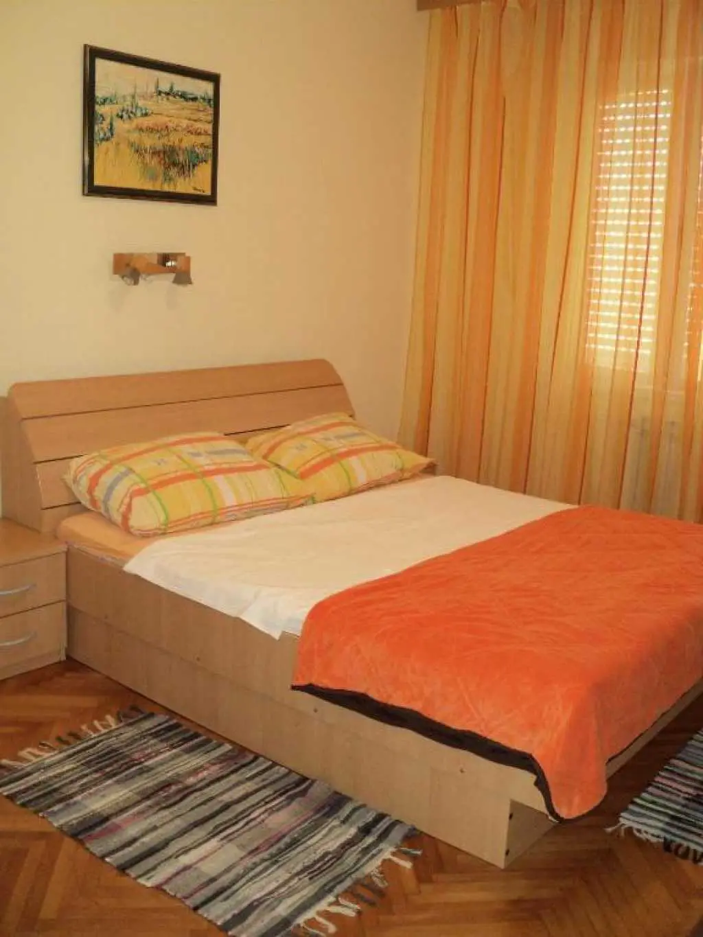 Meget romslig og komfortabel leilighet på 90 m2 med en kapasitet på opptil 7 personer. Den ligger i første etasje og strekker seg langs hele gulvet. Svært nær den gamle byen Rab med mange kulturelle og historiske monumenter der du kan nå på bare 10 minutters gange ved havet. Du har bare 80 m fra nærmeste sandstrand (II. Padova) egnet for barn. Leiligheten består av 3 doble soverom, 3 bad, kjøkken og stue (sofa på kjøkkenet), terrasse ... Utstyr: mikrobølgeovn, kaffemaskin, komfyr, stekeovn, oppvaskmaskin, kjøleskap, satellitt-TV, WiFi internett, air .. . Du kan bruke grillen på gården og et bord for bordtennis og parkering for din bil.