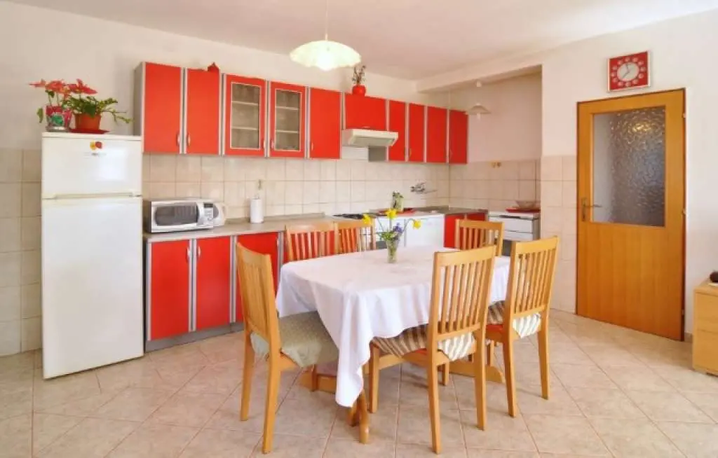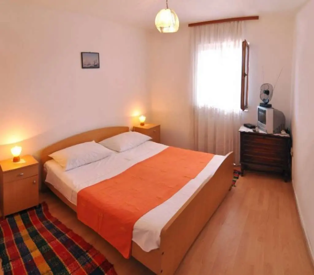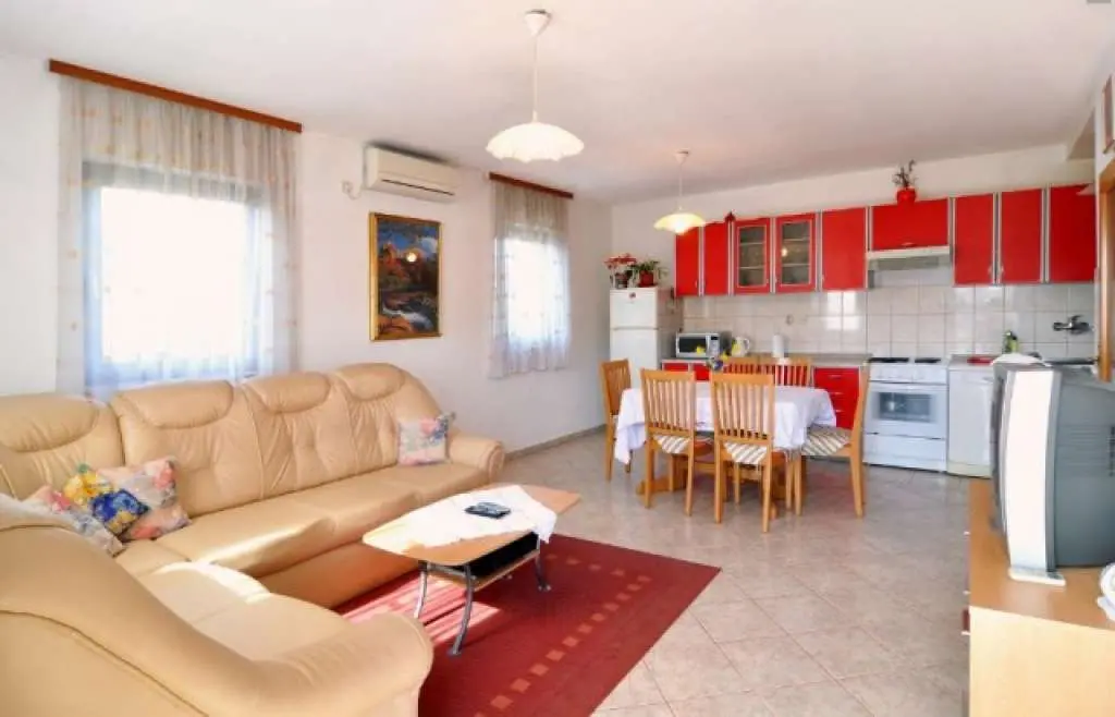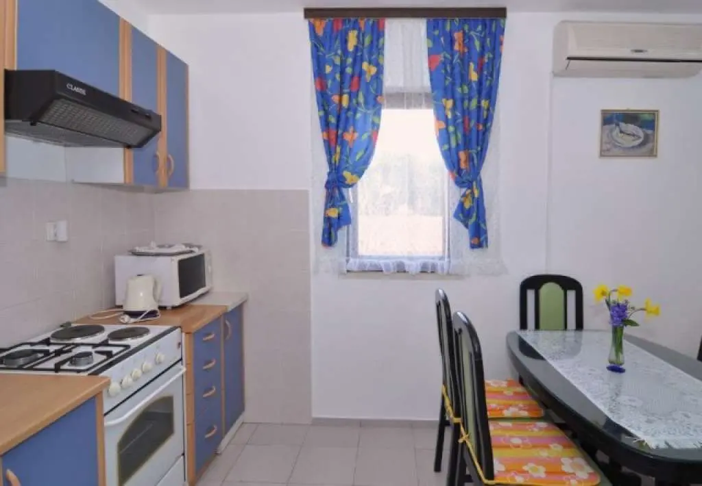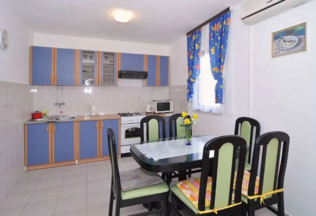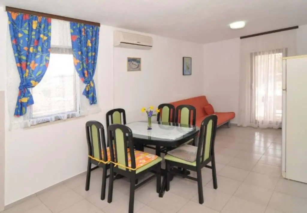Bugevila Apartments ligger i den lille kystbyen, ideelt for avslapping i stillhet og klart hav. Bygningen har to leiligheter: AP1 (4 + 1) høy etasje 45 m2 (2 soverom, kjøkken, stue, bad, terrasse 12 m2). AP2 (2 + 2) 1. etasje 45 m2 (1 soverom, kjøkken, stue, bad, terrasse 12 m2. Privat parkering, turistskatt, Wi-Fi inkludert i prisen. Vennlig vert med en velkomstdrink og gratis fiskemiddag Gjør din ferie hyggelig. Senteret ligger 300 m unna (restauranter, pizzeriaer, kafeer, supermarked). Leilighetene ligger 150 m fra sjøen. Velkommen!