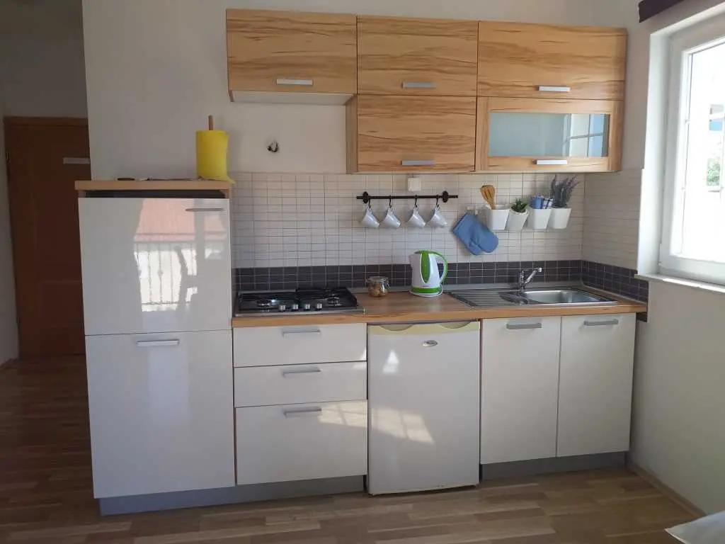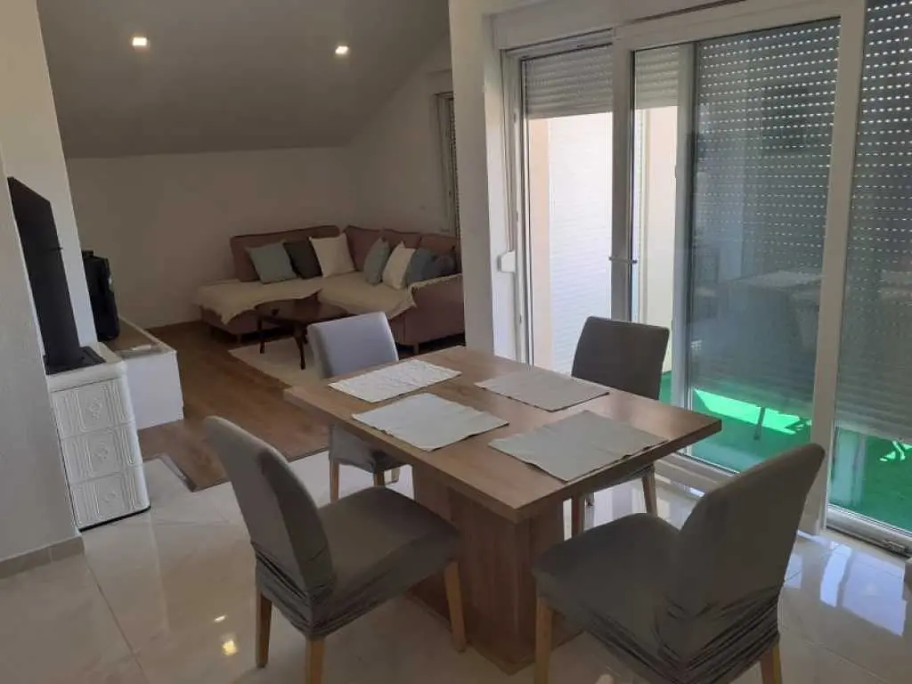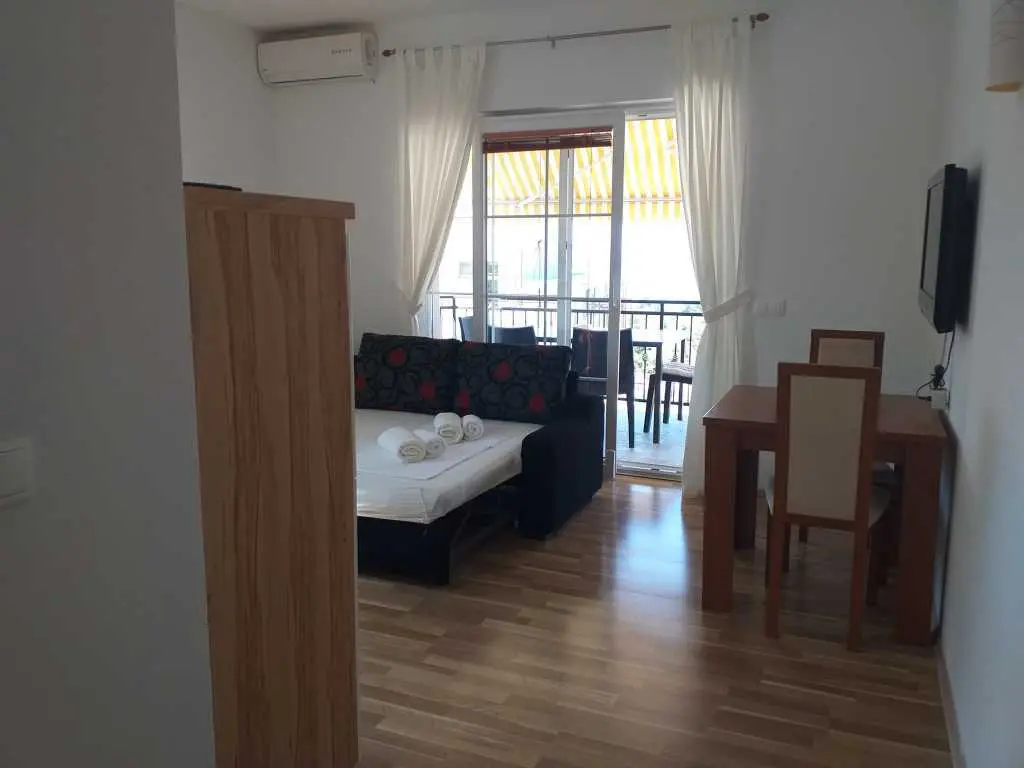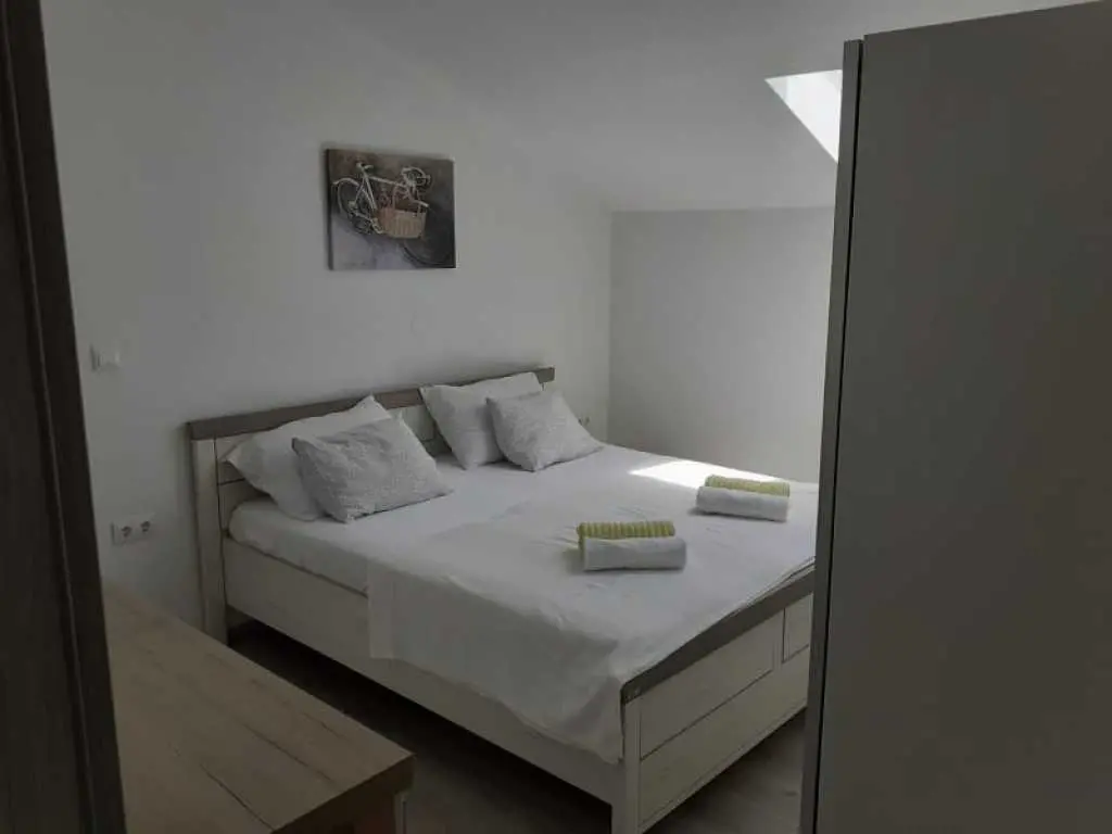 Leilighetene Gverić ligger i en bosetting Podsolarsko, stille og rolig sted for en ferie. Huset har 2 studioleiligheter og 2 store leiligheter. Hver leilighet har et fullt utstyrt kjøkken, bad, air condition, en terrasse med utsikt over havet og øyene. Parkering er tilgjengelig, gratis internett (WiFi). Luftkondisjonering belastes separat, 5 EUR / dag. Podsolarsko-feriestedet ligger i nærheten av et meget attraktivt hotellkompleks "Solaris", hvor du kan nyte de vakre strendene rike på vannaktiviteter for både barn og voksne. For all informasjon om priser og frie vilkår, kan du kontakte oss via telefonnummer på e-post.