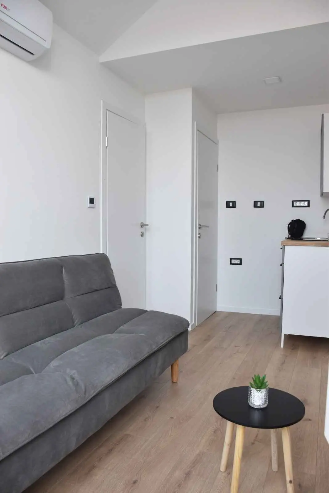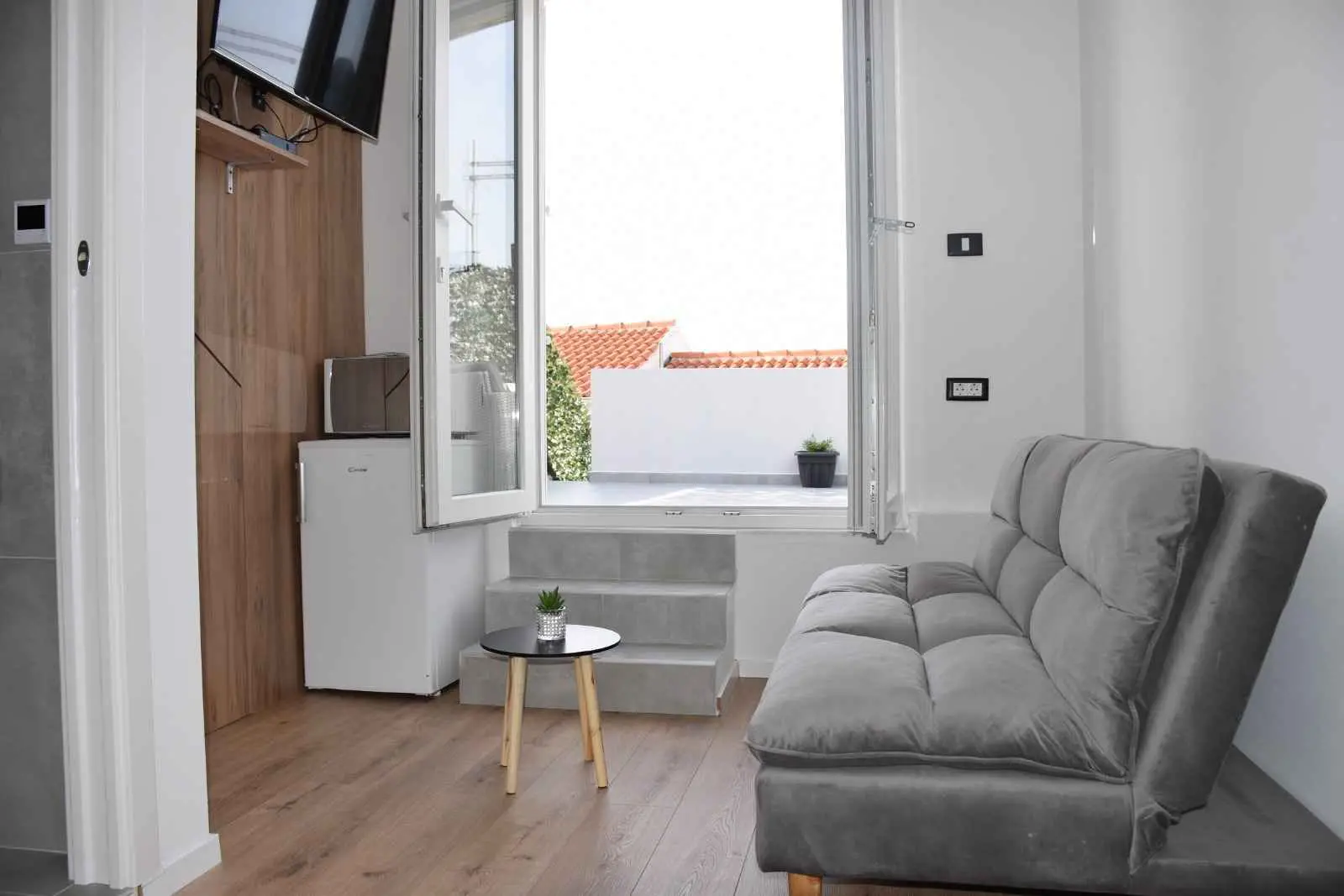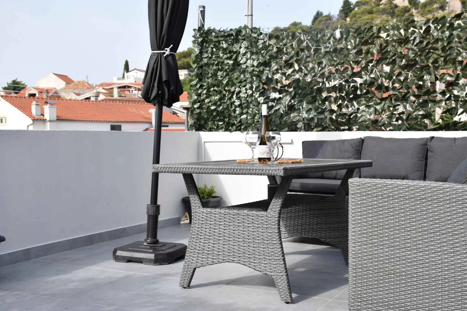 Leiligheten tilbyr overnatting i en rolig del av Tribunj, omgitt av grøntområder og olivenlunder. Gaten er enveiskjørt og det er ingen stor trafikk. Leiligheten har klimaanlegg, 2 soverom og en sovesofa i stuen, et fullt utstyrt kjøkken (oppvaskmaskin, mikrobølgeovn, stekeovn, vannkoker, kaffetrakter, mikser...) 2 toaletter (dusj og badekar), vaskemaskin for varer, tørketrommel, myggbeskyttelse i alle rom, TV på soverom og stue, gratis WIFI, SAT TV. Et strykebord og et strykejern er tilgjengelig. Leiligheten inneholder også to romslige terrasser for hvile, en grill og 4 parkeringsplasser.