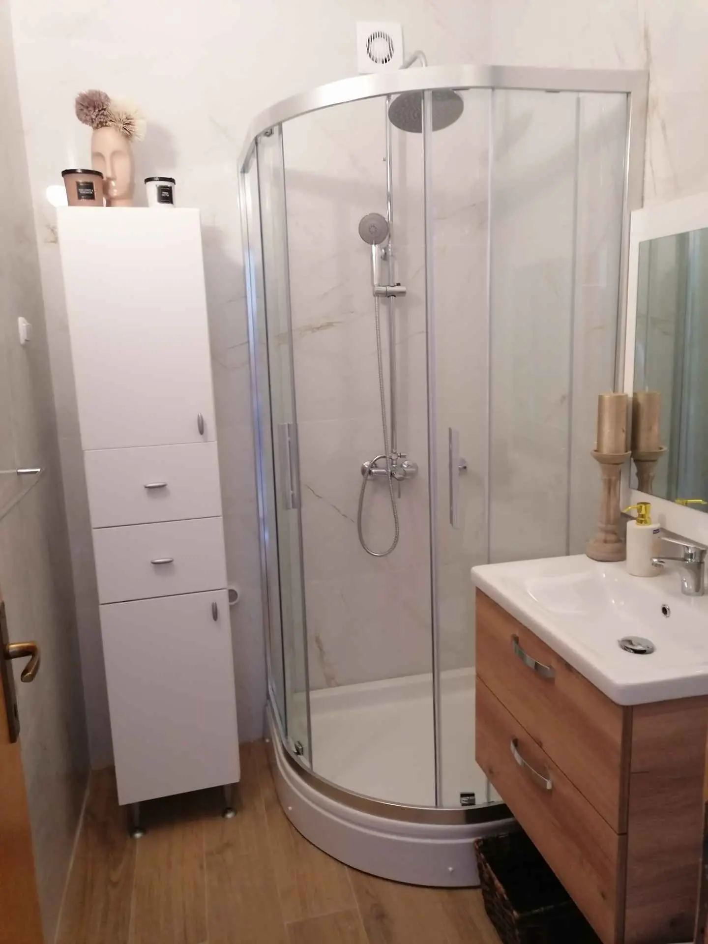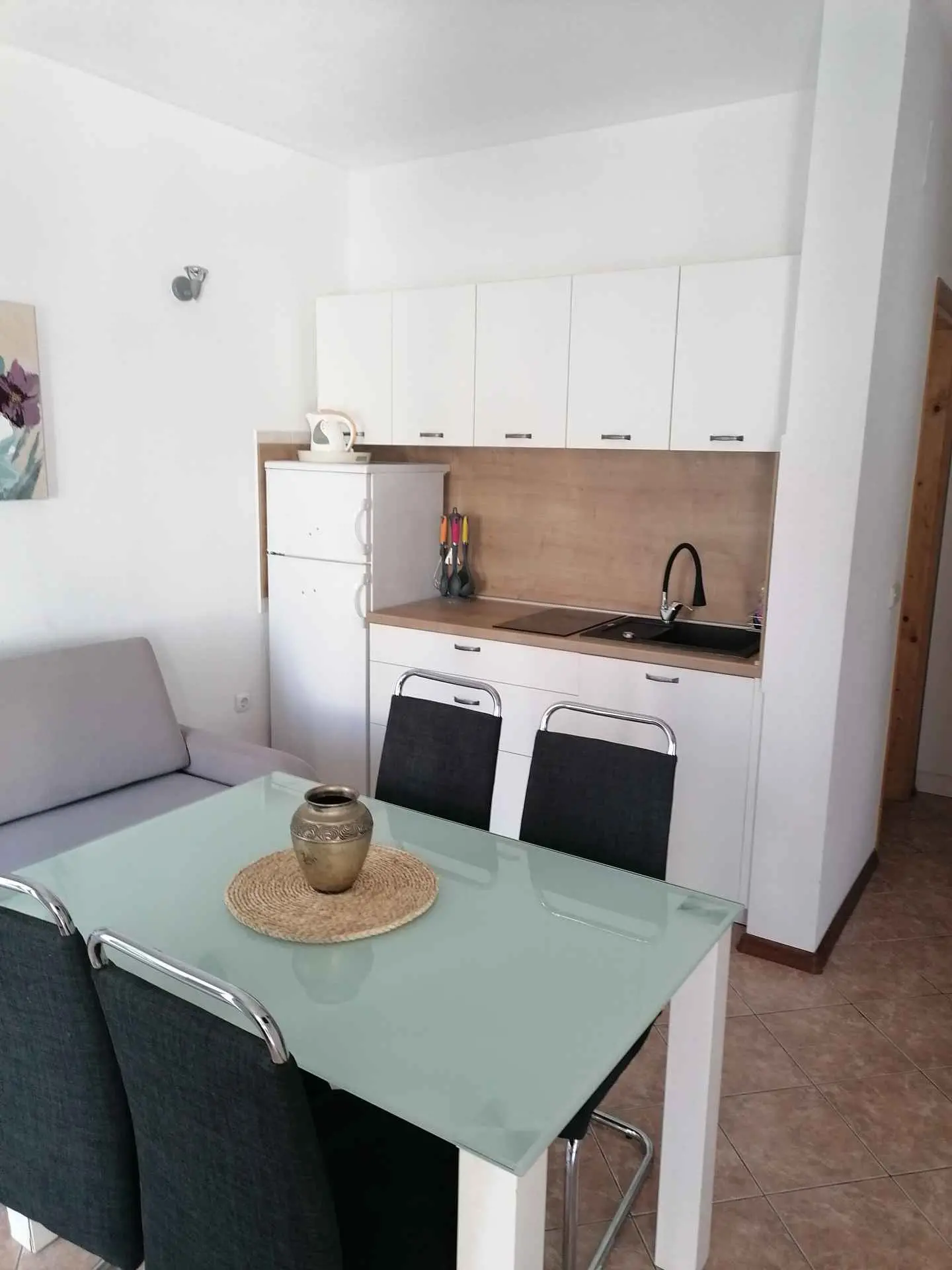 Eiendommen består av 2 leiligheter til leie. Veldig rimelige eiere, alt gjøres etter avtale. I hver leilighet har du ekstraseng for ytterligere to personer, 4 + 2 (prisen er den samme). Naturlig og inngjerdet hage for barn og kjæledyr. Leilighetene har: Bad med dusj, håndklær, desinfiserende middel. Kjøkkenet inneholder komfyr, vannkoker, bestikk og kokemuligheter. Kjøkkenhåndklær og håndklær. 2 soverom atskilt med dobbeltsenger, stort skap som ligger i gangen. Stue / spisestue i stue, TV og sofa, spisebord. 1 terrasse med utendørs bord og parasoll. Balkongen ligger på siden av soverommet.