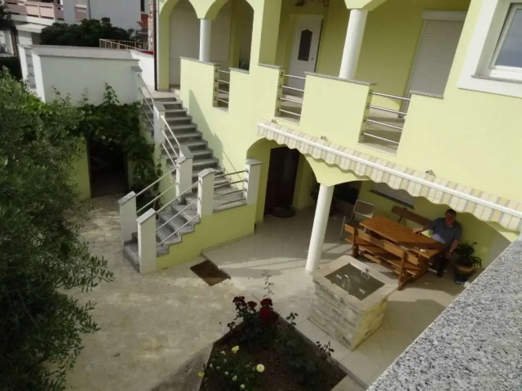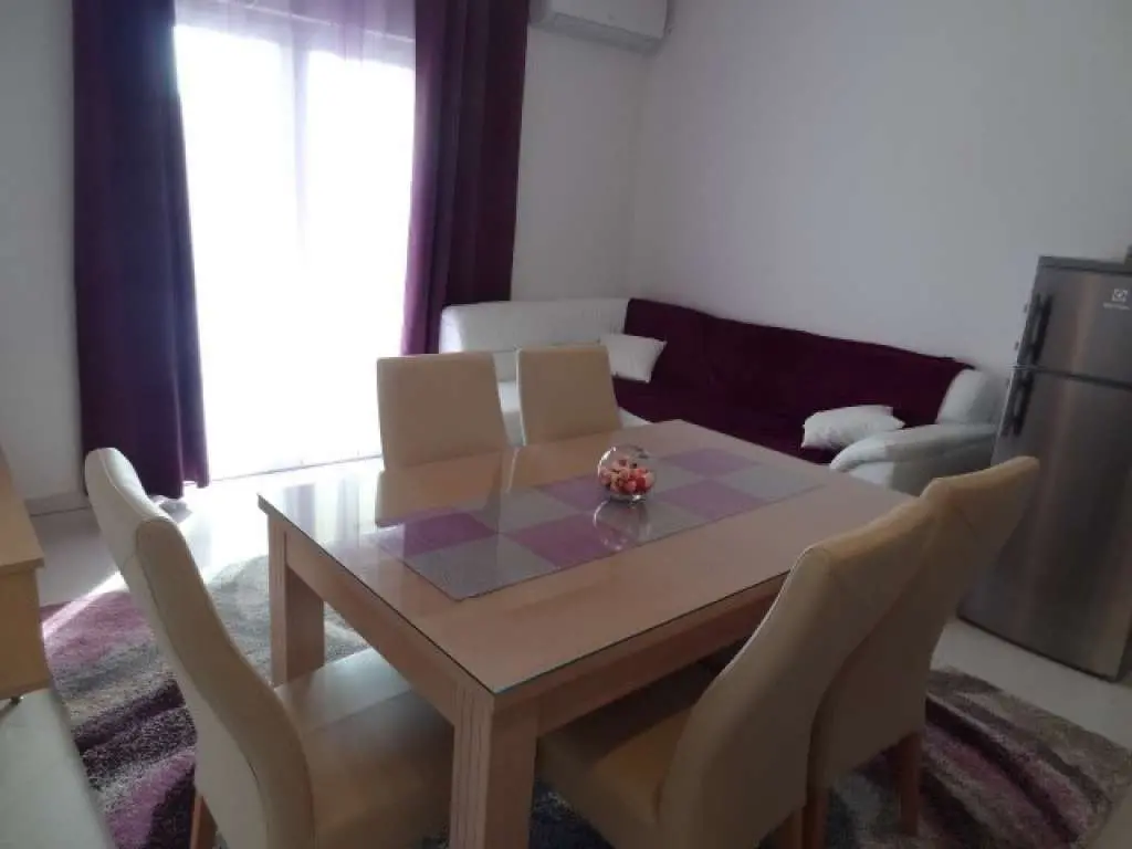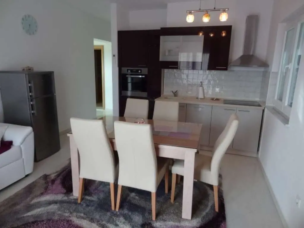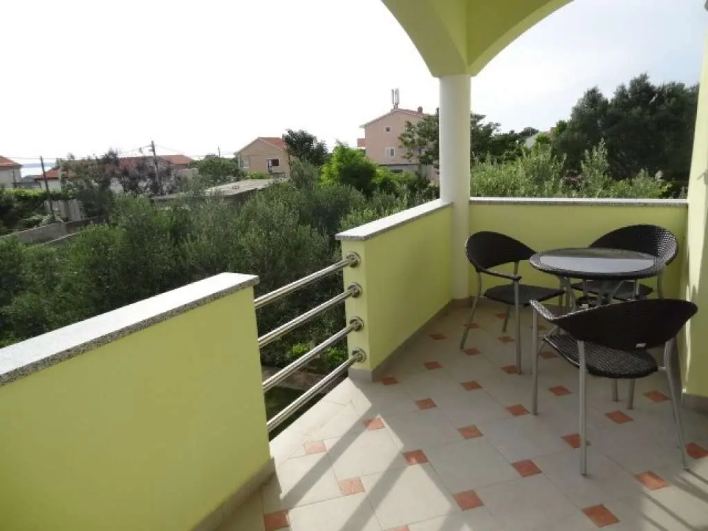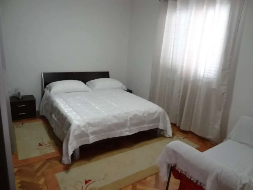 Leilighet med 4 + 2 senger i første etasje av huset. Det er to soverom med to senger, stue med to ekstra senger, kjøkken, kjøleskap, bad med dusj, vaskemaskin, balkong med utsikt over havet og øyene, air condition, satellitt-TV og parkeringsplass.