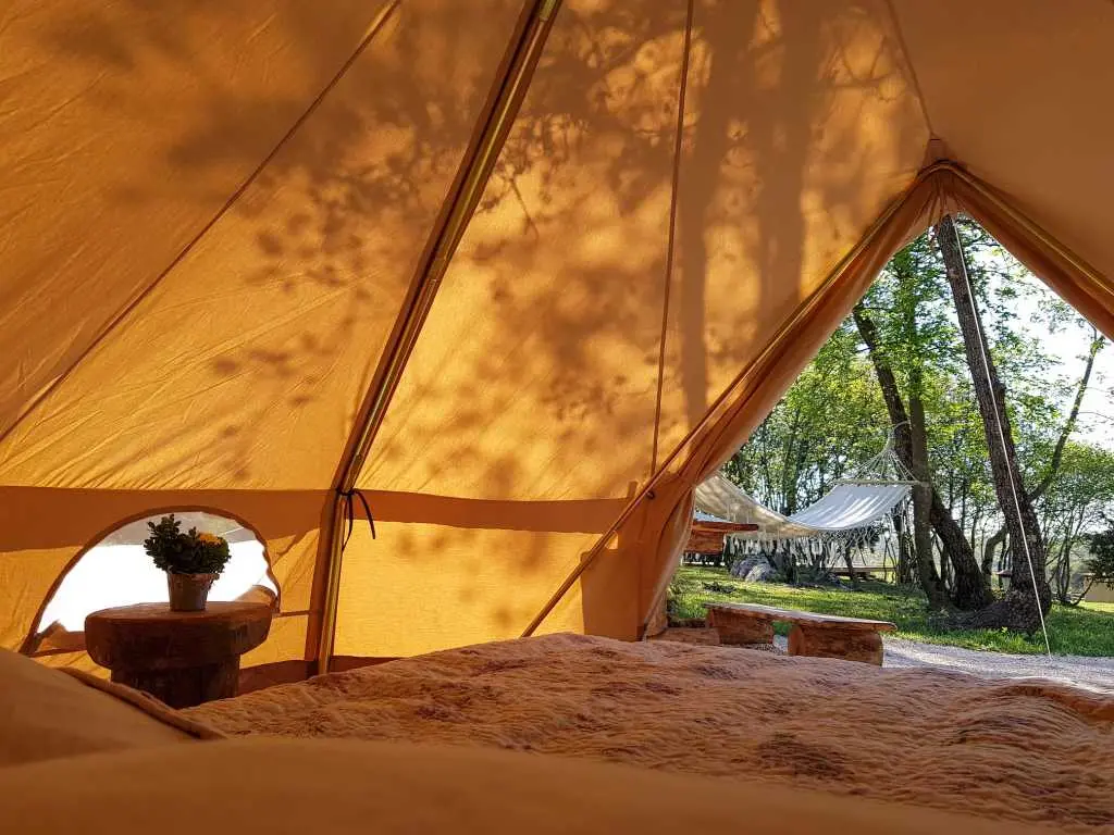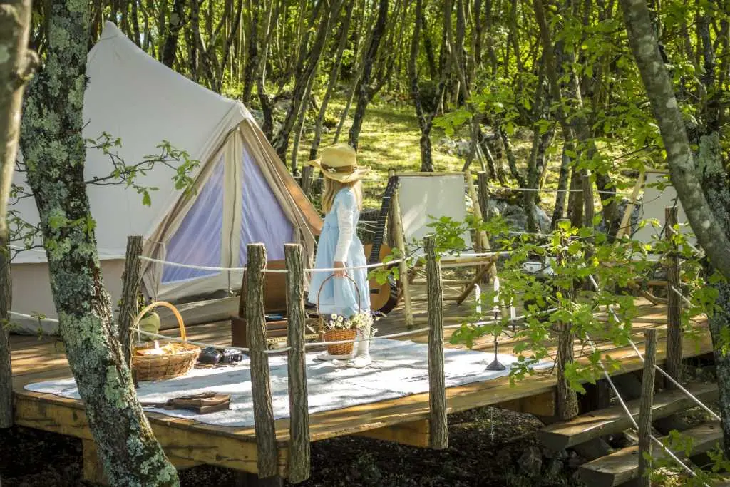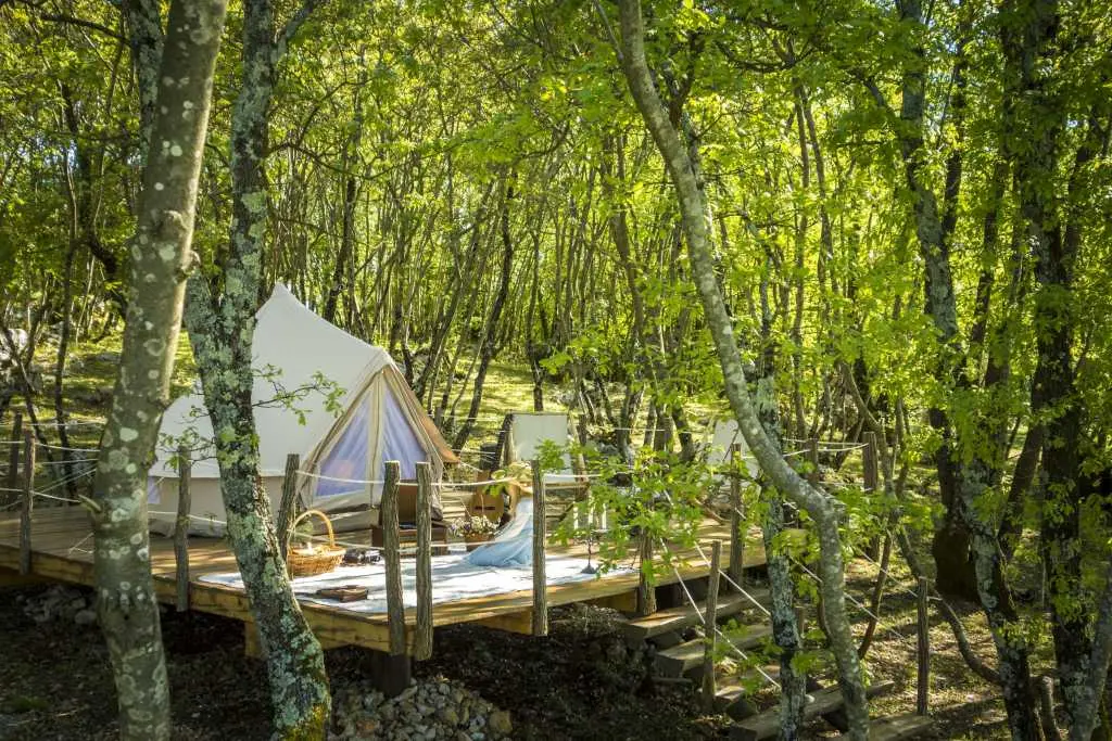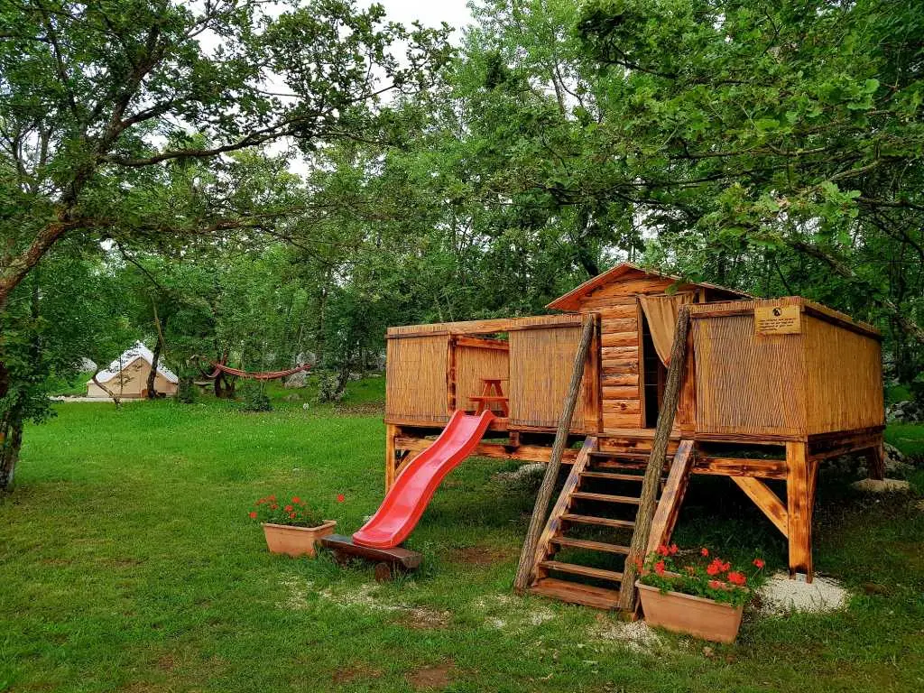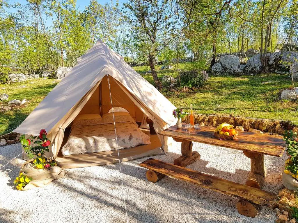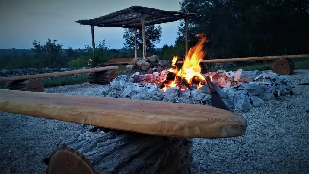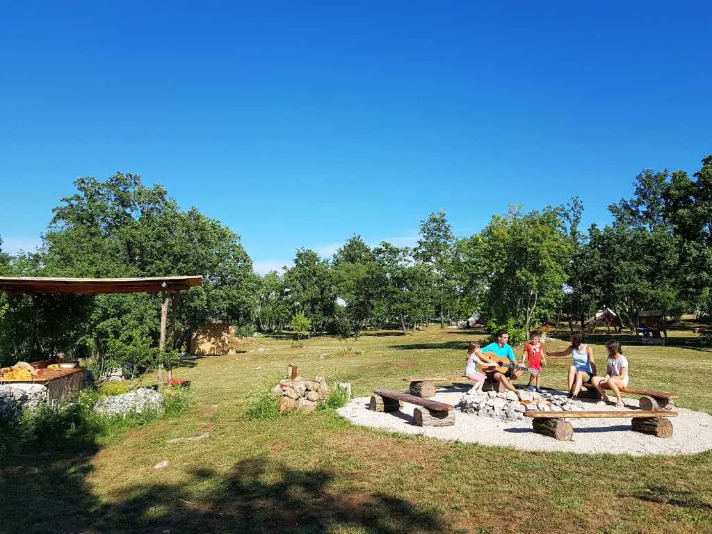 Innkvartering i Robinson "Freedom" er et sted i vakker nesten løsrevet natur, det ligger i den sentrale regionen i Istria, nær den lille landsbyen Čubani, Cere. Det er et sted for eventyrere som liker å tilbringe tiden i naturen, puste frisk ren luft, ha det gøy rundt bålet, lytte til crickets om natten og se på stjernene, fordi det ikke er noen lysforurensning. Gjestene sover i telt utstyrt med luftmadrasser med nødvendige sengetøy og puter. Ved siden av leirbålet er det dusjer med soloppvarmet vann, toalett, miljøhage, utekjøkken du kan bruke til å forberede grillen og gratis parkeringsplass. Og selvfølgelig god plass til å spille. Ytterligere funksjoner inkluderer: volleyballbane, liten fotballbane, bordtennis, bueskyting, elegant linje, huske, lekeplass for barn og selvfølgelig god plass til å spille. Hvis du føler behov for å finne ro i deg, å hvile ørene fra byens støy, senke livet ditt en stund, komme i kontakt med deg selv og partneren din, er dette kanskje det rette stedet for deg.
